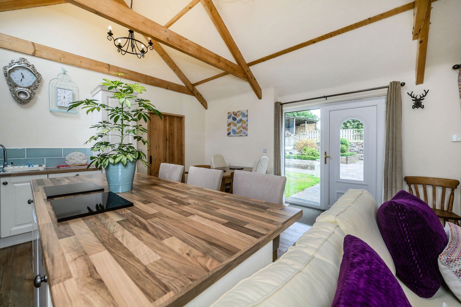 This converted milking parlour has been lovingly restored.. Attention to all details. The welcome pack on arrival was the best I’ve ever received. A bowl of eggs from the free range chickens on the smallholding, home-made sponge, wine! An especially nice touch included a vase of flowers. The owners are very friendly and made us feel welcome from beginning to end. We can’t wait to have some grandchildren for an excuse to go back to feed carrots to the donkeys!