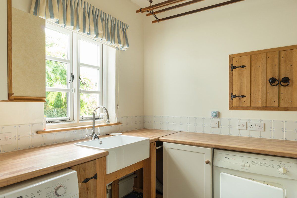 Ground floor cloakroom and laundry room with washing machine, tumble dryer and pulley airer