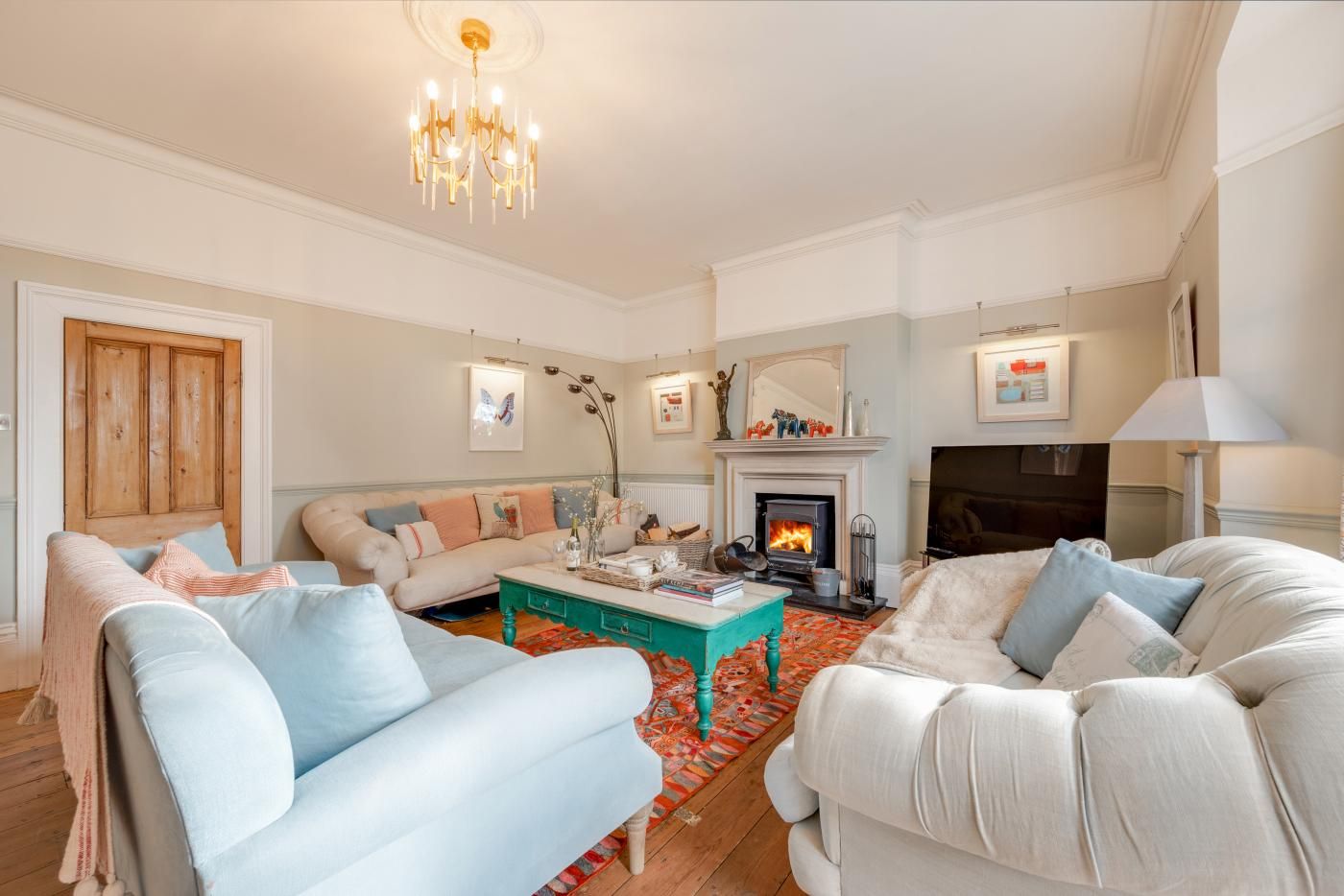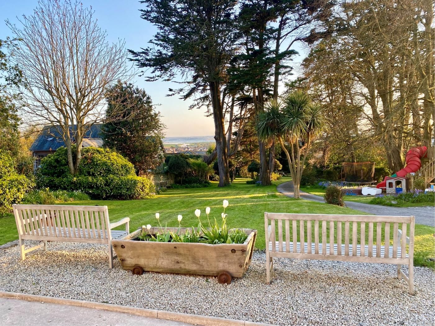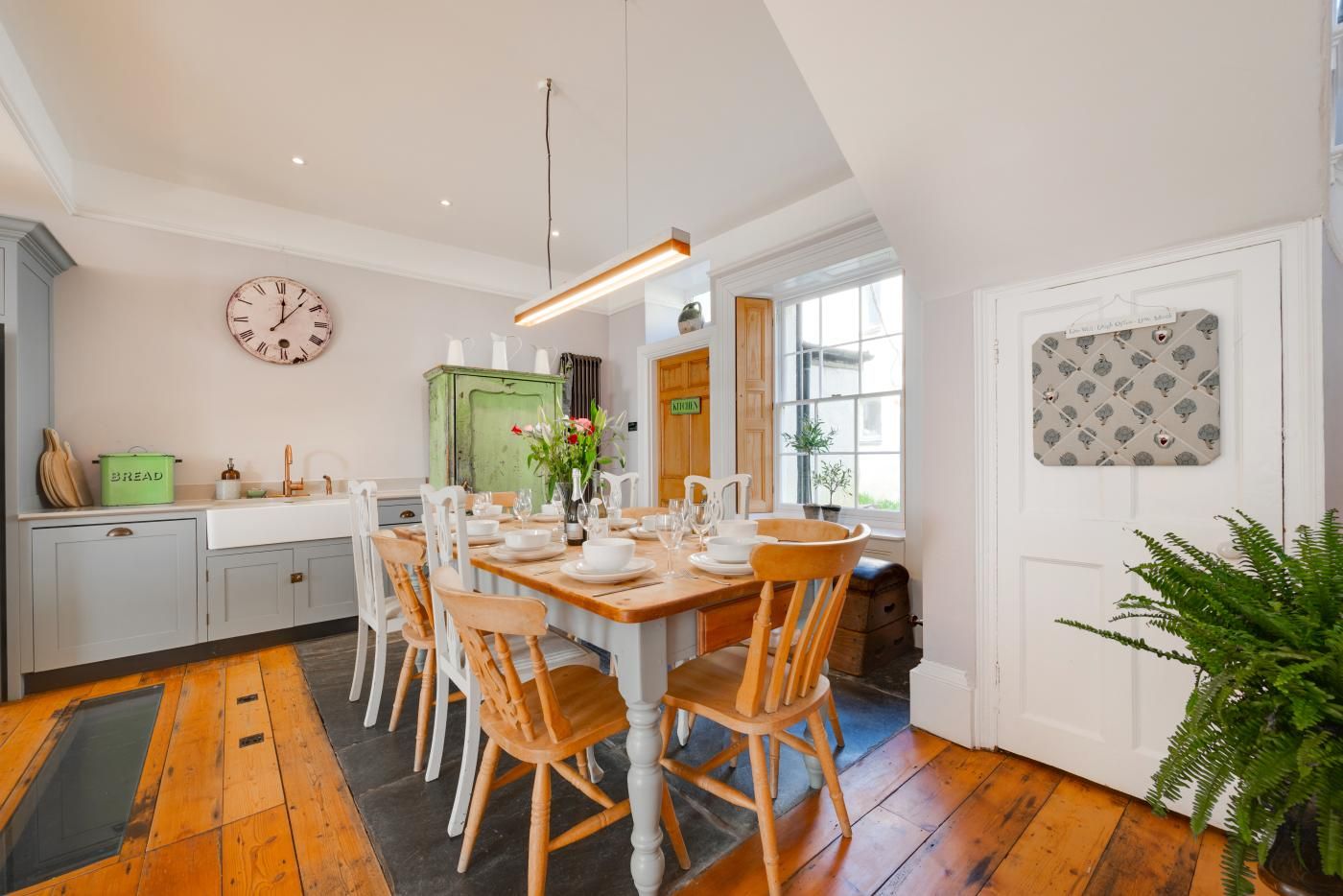 Unwind with a group of friends or family in this spacious and elegant five-bed Georgian home with shabby chic decor, romantic bedrooms and a children’s play area outside.