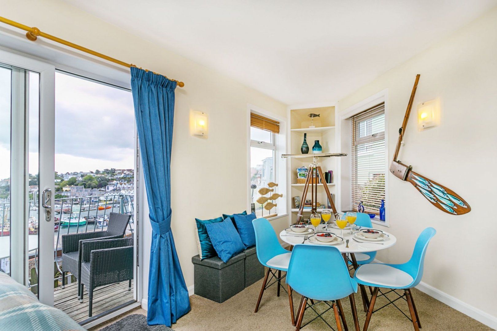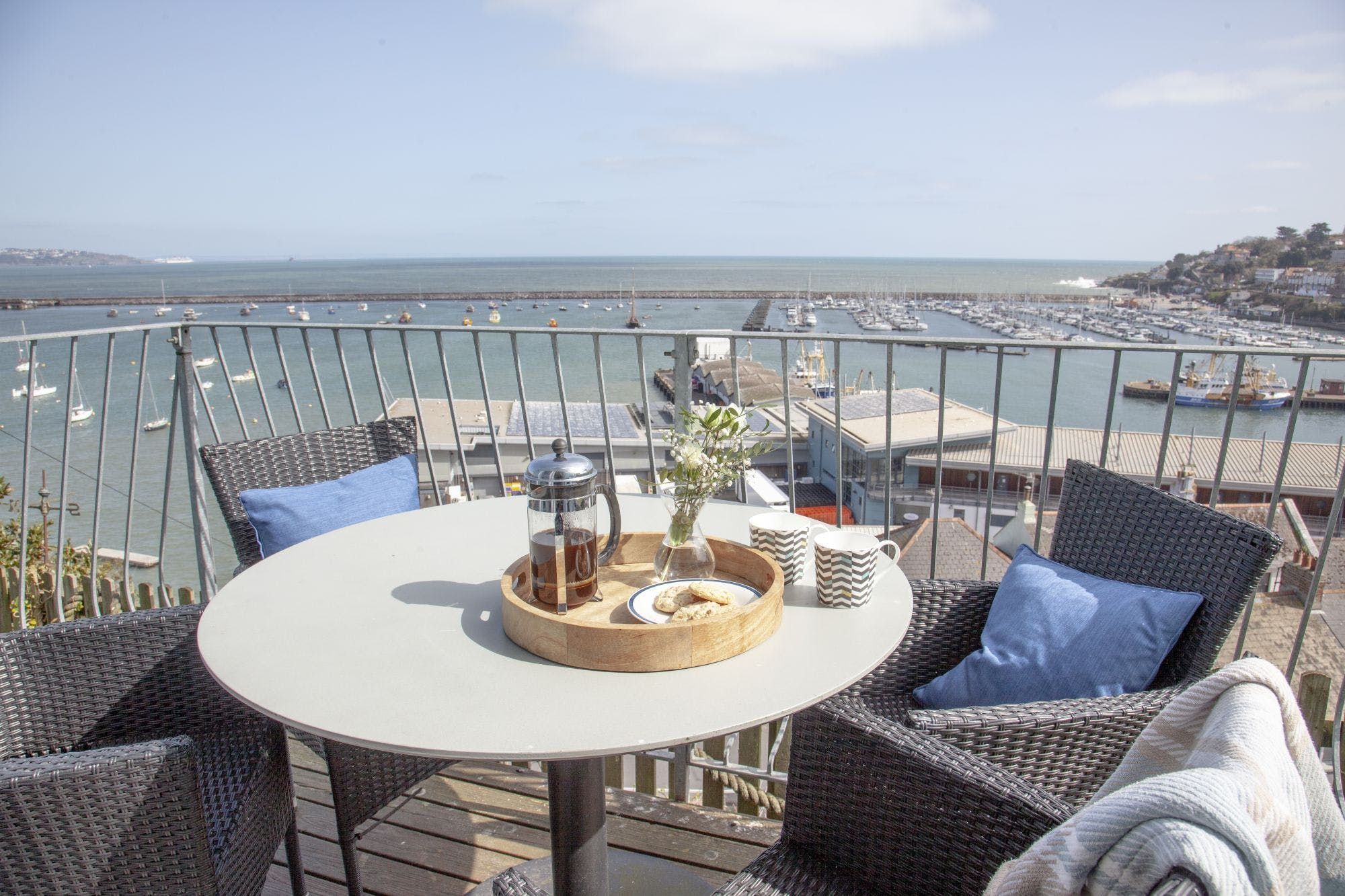 It's impossible to miss the eye-catching, triangular building that houses this seaside home. The dark blue structure boasts one of the best views over the bay, and its unique design is one of our favourites in town. Split between two bright bedrooms and an open-plan living room that extends to the balcony, this home is an excellent option for a first visit to Devon. When you're ready to head out, you'll be pleasantly surprised at the variety of things on offer in Brixham – including beautiful art galleries, fantastic restaurants, great bars, and plenty of water-based activities. Wake up early and head down to the world-famous Brixham Fish Market for fresh fish landed just twenty metres away. If you want to get away from it all, walk along the coast to the shingle beach at Fishcombe Cove or take the car along the coast to find a secluded stretch of sand. Alternatively, head to the colourful village of Kingswear – a fifteen-minute drive away – before boarding the ferry over to picturesque Dartmouth. After a day out exploring, head home for that sumptuous fish supper and watch a movie by the fire. Finally, drift off in the comfortable and quiet bedrooms, ensuring a great night's sleep to prepare you for another day of holiday joy.
