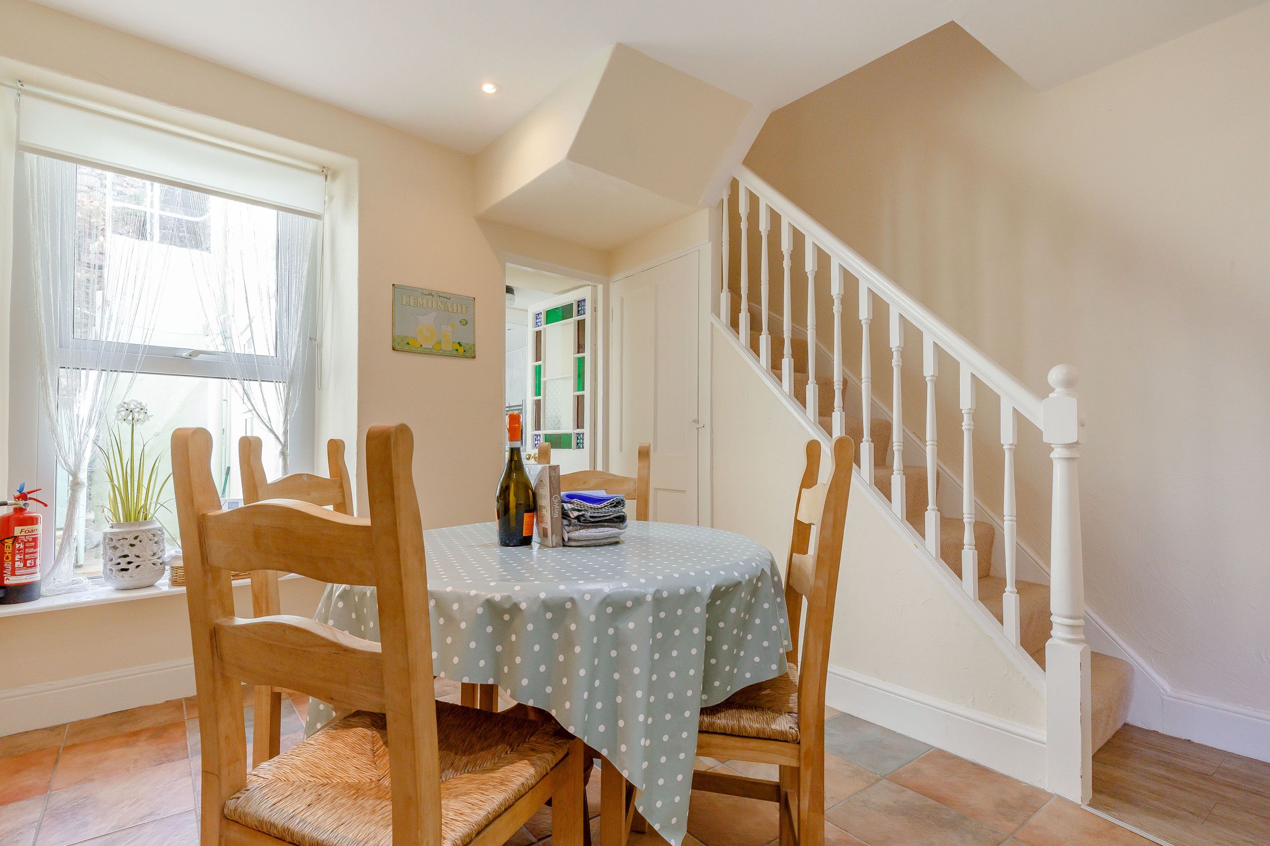 Amenities Gas central heating and electric fire. Electric oven and ceramic hob, microwave, fridge/freezer, washing machine, Smart TV and WiFi. Fuel and power inc. in rent. Bed linen and towels inc. in rent. Free roadside parking behind property which is a 3 minute walk away. Front terrace with furniture and rear multi-level courtyard. Sorry, no pets and no smoking. Shop 0.4 miles, pub 0.3 miles. Note: Steep steps to enter property and to multi-level area of rear garden, children to be supervised at all times and unfortunately may not be suitable for those with limited mobility