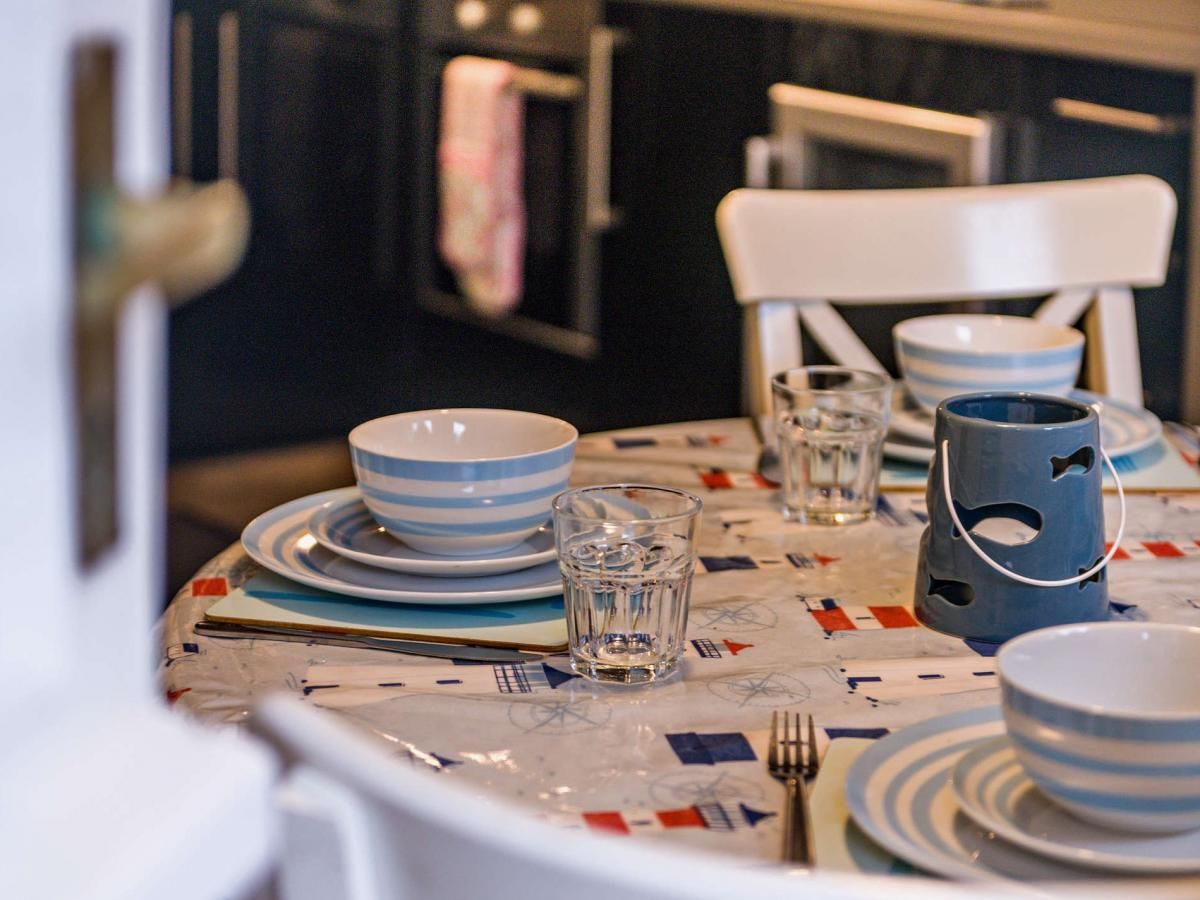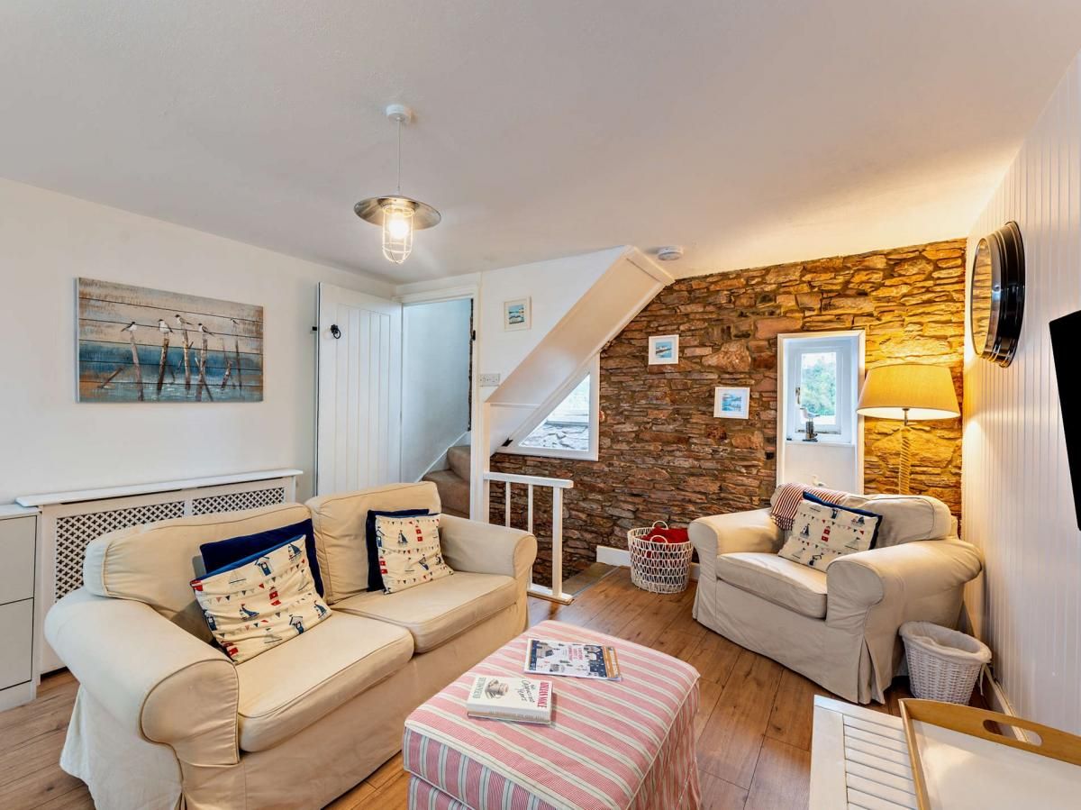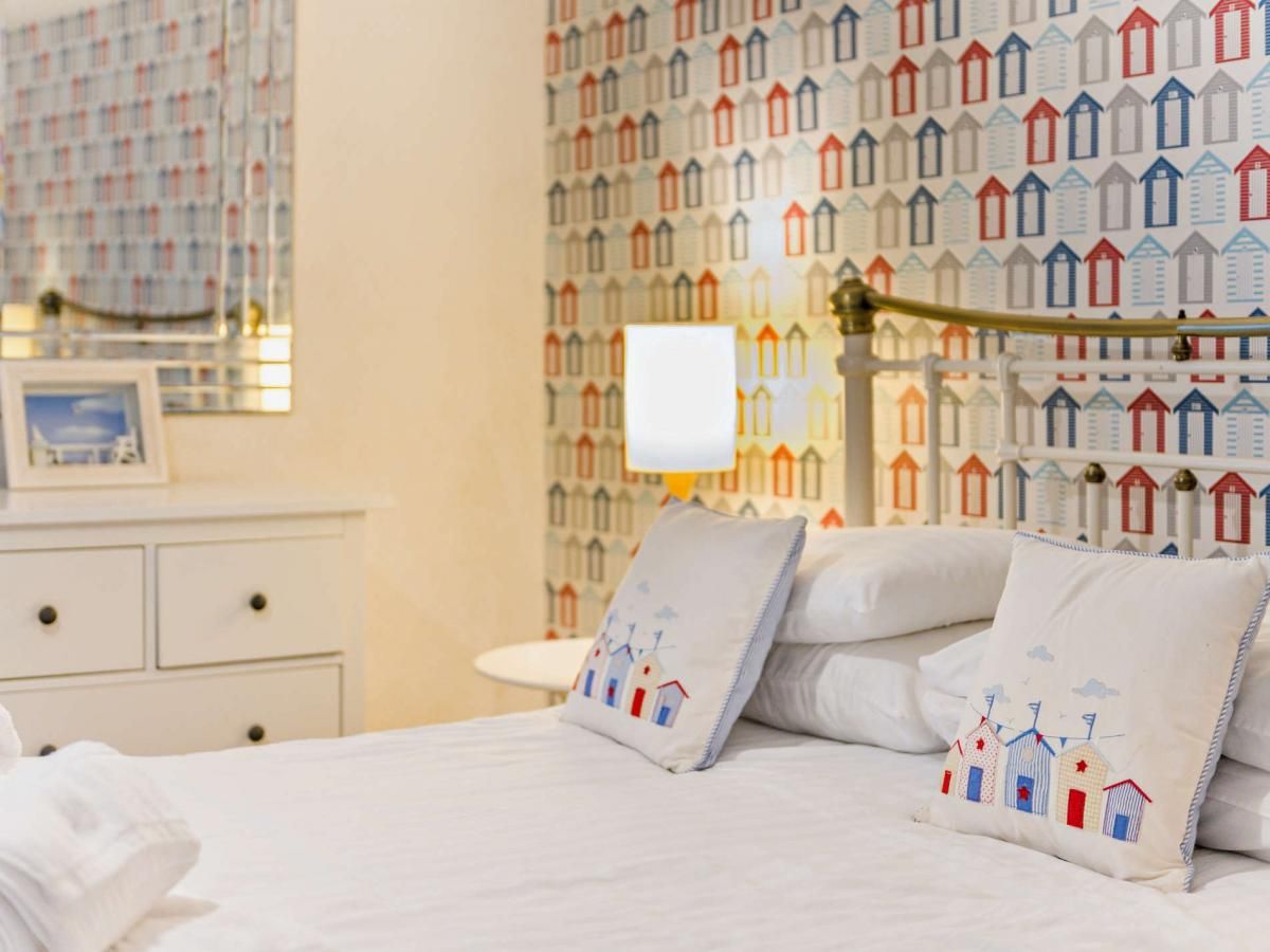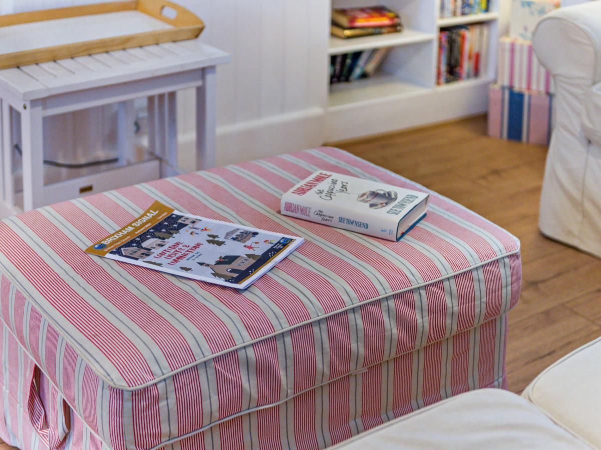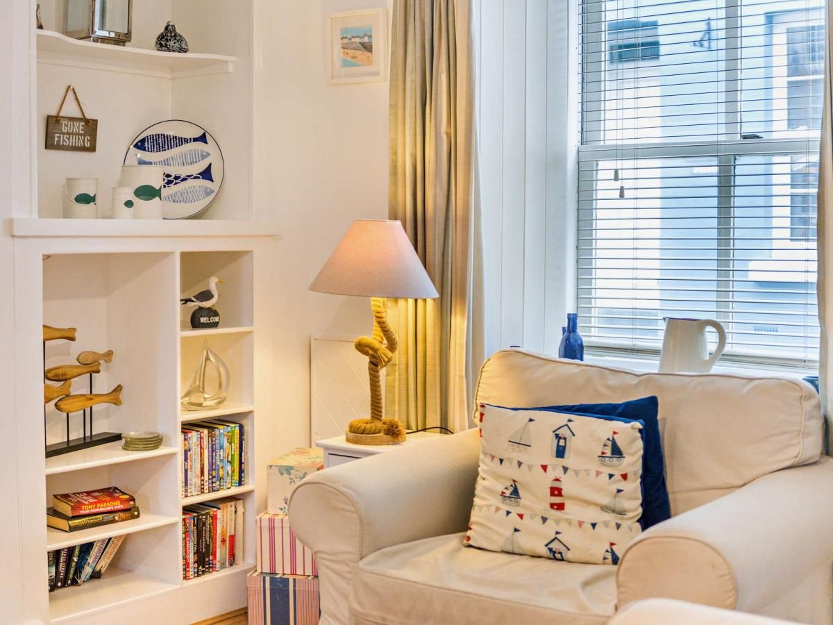Navigate your way along the narrow roads lined with pretty painted cottages and you’ll feel city life melt away. Step straight into the living room and there’s no doubt you’ve arrived at the seaside, with a fresh nautical colour scheme with plenty of comfy beach-hut emblazoned cushions.