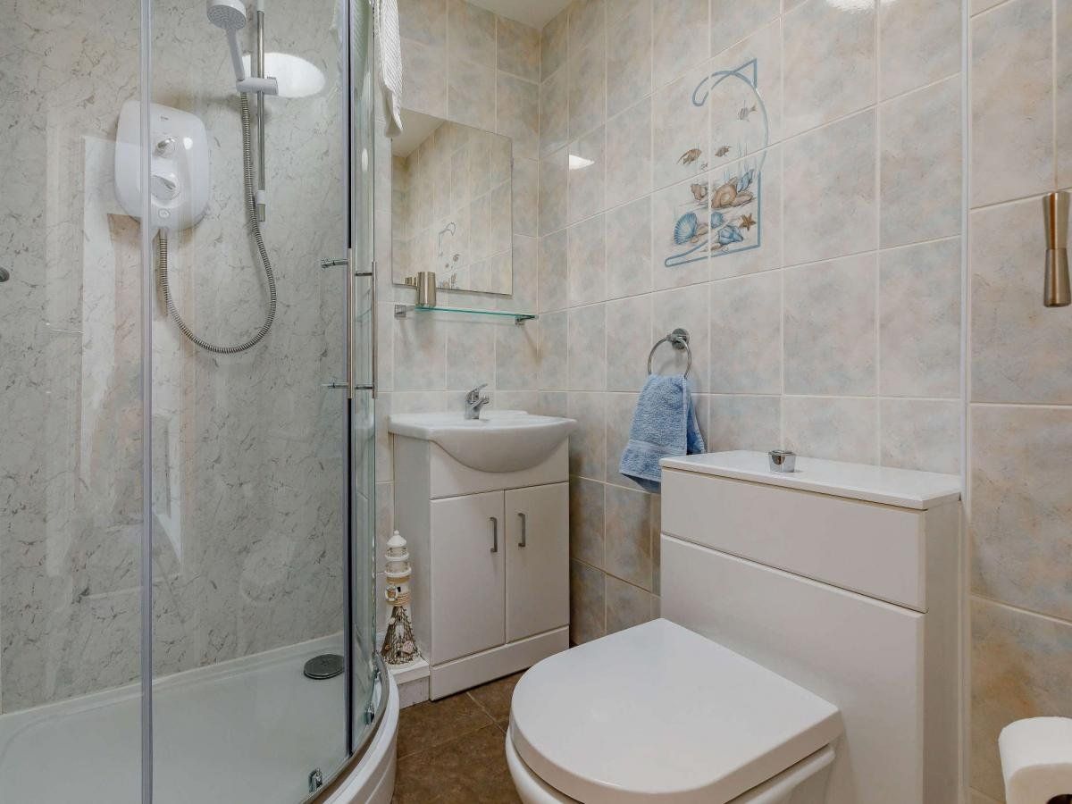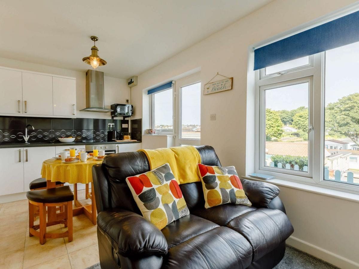 Bright pops of colour and a subtle nautical theme create a cosy coastal paradise that reflects the seaside scenery that surrounds you. The chalet welcomes you into the open-plan kitchen/dining/living space, flooded with natural light from the picture windows where you can admire the stunning views over Torbay and out to sea.