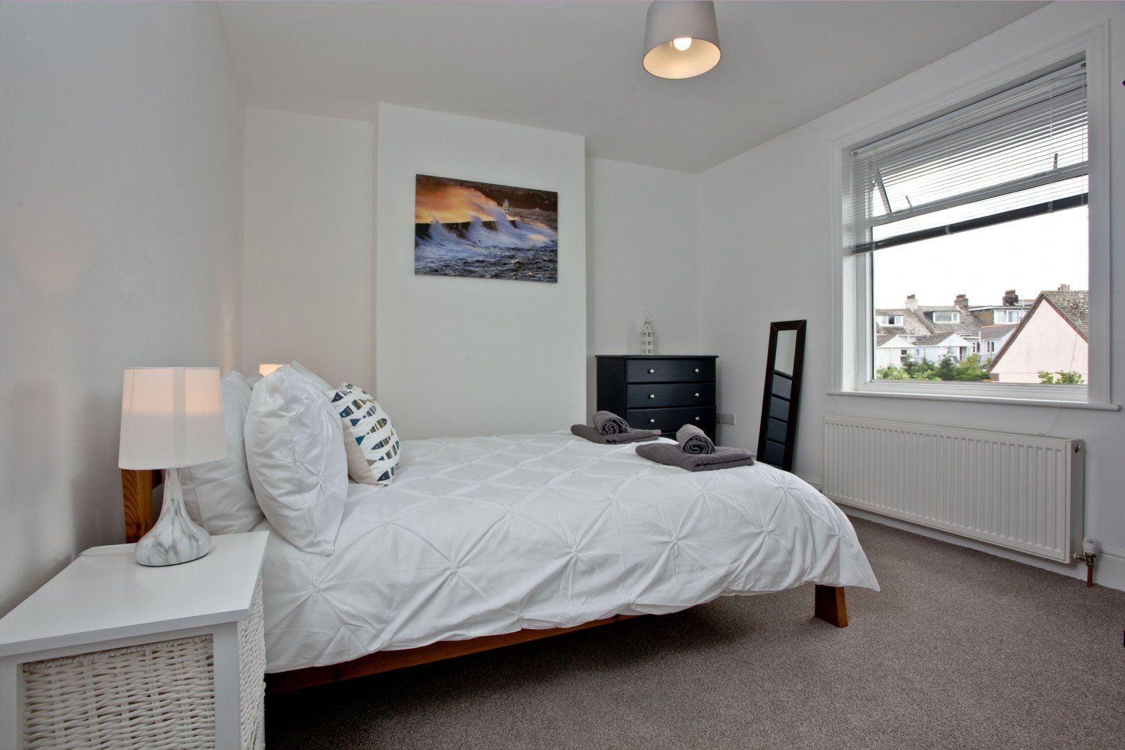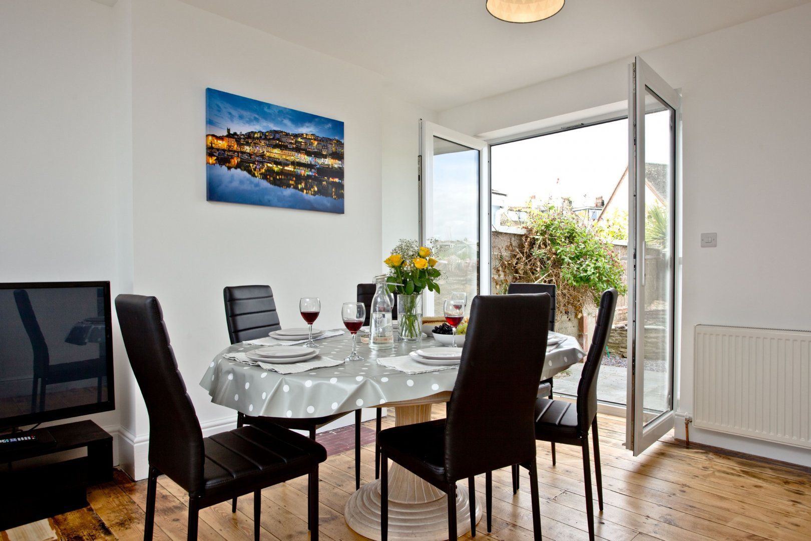 We think this cute home on the south Devon coastline has the rustic cosiness of a beach hut, but with all the modern finesse demanded by today's holidaymakers. Inside, original wood flooring and the brick fireplace housing a wood-burner are particularly handsome features, but the real star of the show is the view of Brixham Harbour from the large windows in both the living room and bedrooms — pack your binoculars and you can watch fishing boats coming in and out of the bay. Around the other side of the home, there's a stone-walled back garden complete with a patio, alfresco seating area and a barbecue. We can totally understand if you're not in the mood to cook at any point and the nearby town of Brixham — only ten minutes or so away on foot — has plenty of seafood restaurants, as well as fish and chips shops and cosy pubs. In the other direction, Fishcombe Cove and Battery Gardens can be reached in the same amount of time, too.