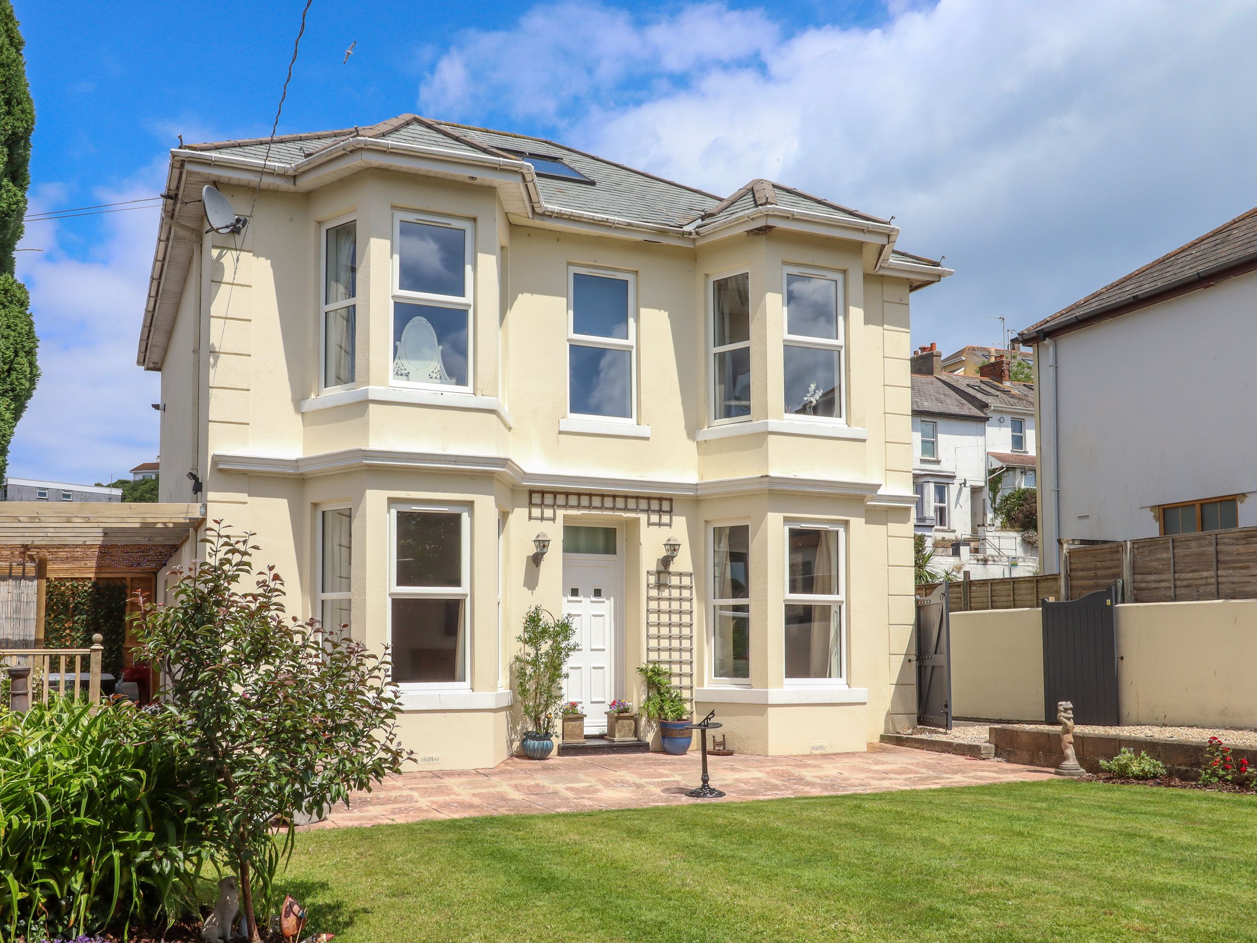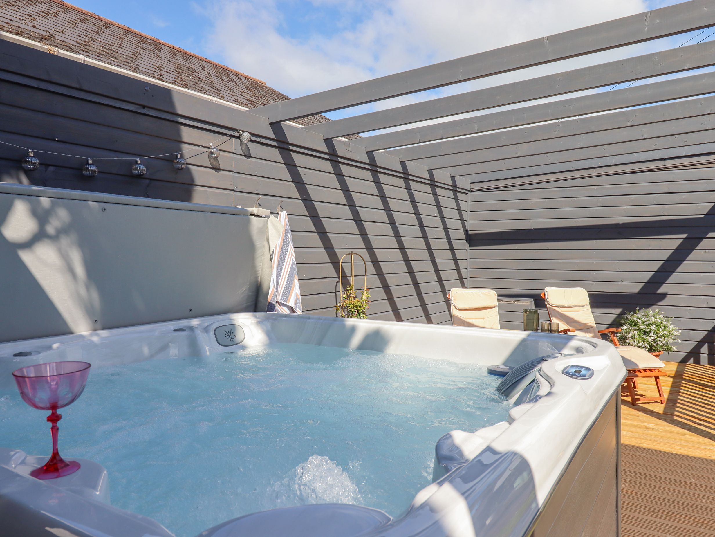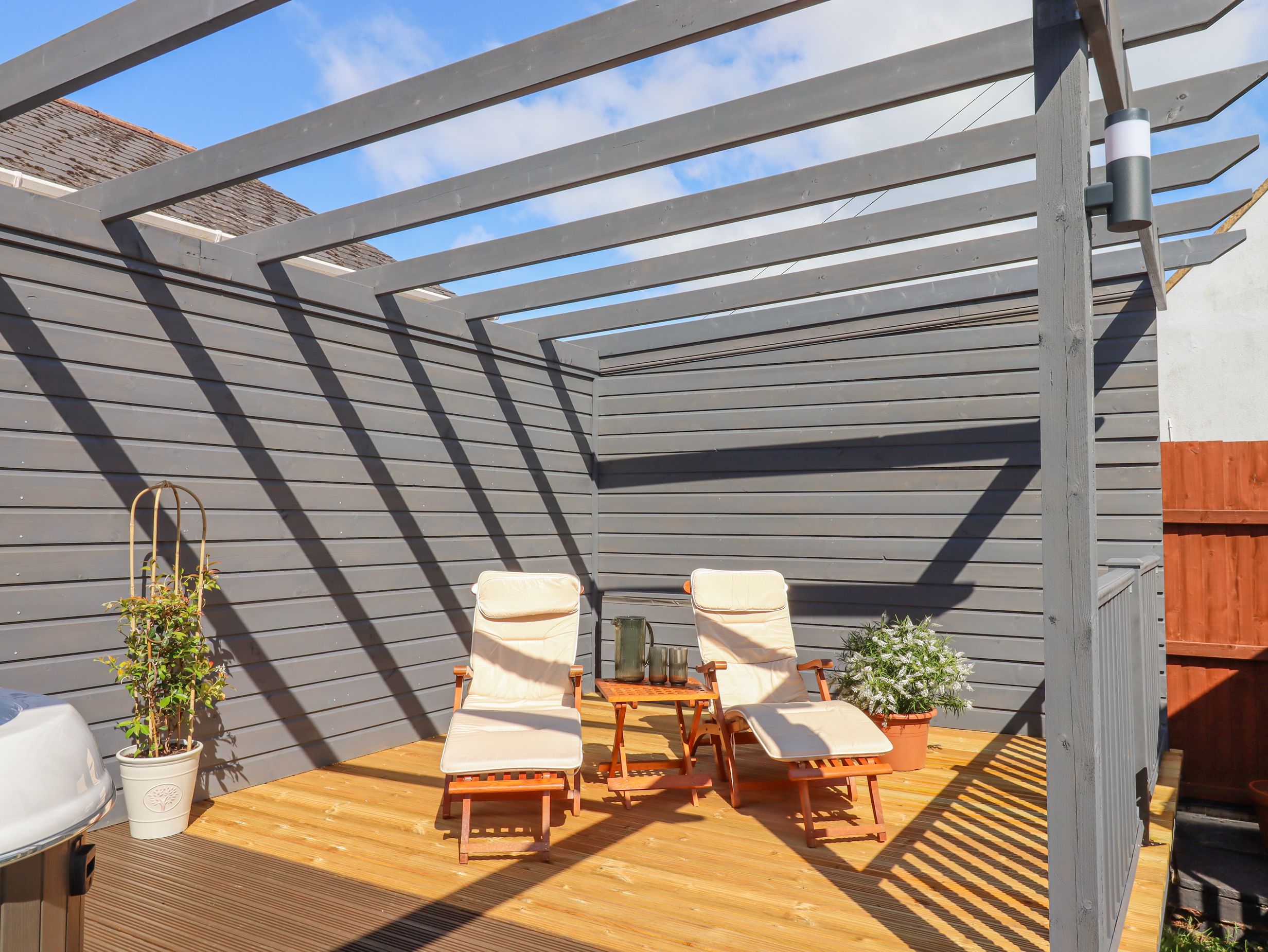 Amenities Gas central heating with Nest thermostat system. Electric oven, induction hob, combi microwave/oven, fridge/freezer, washing machine, dishwasher. 4 x Smart TVs (in bedrooms and lounge), DVD player, soundbar, WiFi. Fuel and power inc. in rent. Bed linen and towels inc. in rent (linen and towel change mid-week if requested, please contact owners). Welcome hamper on arrival. Decorated for Christmas if requested. Highchair and travel cot available. Private driveway parking for 3 cars. Enclosed rear garden with patio, decking, lawn, furniture, chiminea, and hot tub. Pub 0.1 miles, shop 0.2 miles, harbour 0.6 miles, beach 1 mile. Sorry, no pets and no smoking. Note: The driveway is 2.159 meters wide (85inches), allowing for a standard vehicle to pass with care. Note: The fireplace is a feature only and does not work. Note: This property has a Good Housekeeping bond of 350GBP. Note: Camp bed available upon request providing space for an extra guest, will be placed in the lounge area. Note: There is an uneven surface at the rear patio area. Please take care when walking across the patio. Note: There is an out-of-bounds area for exciting renovation leading down from the decking area! The area is currently closed off by a 'no entry' sign. Note: Please contact the owners if you have a special occasion during your stay or you have any special requirements. Please note: Due to the levels within the property, it may not be suitable for wheelchair or pushchair users