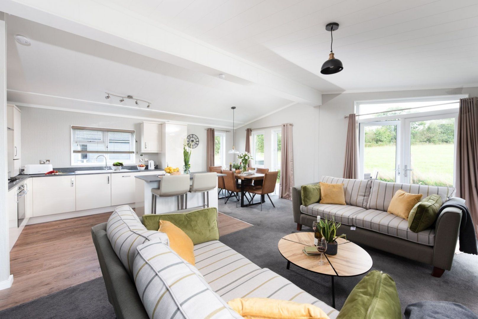 When it's time for a rest up at home, the lodge interiors feel fresh and uplifting, with a subtle palette of moss greens and buttercup yellows echoing the rich fauna and flora outside. In winter months, huddle together around the dining table for mealtimes and catch-ups with views of the garden before settling down to cosy film nights. And on long summer nights, open the French doors wide and take things outside into the garden to fire up that barbecue and bubbly hot tub – there's no finer place to toast a day's end.