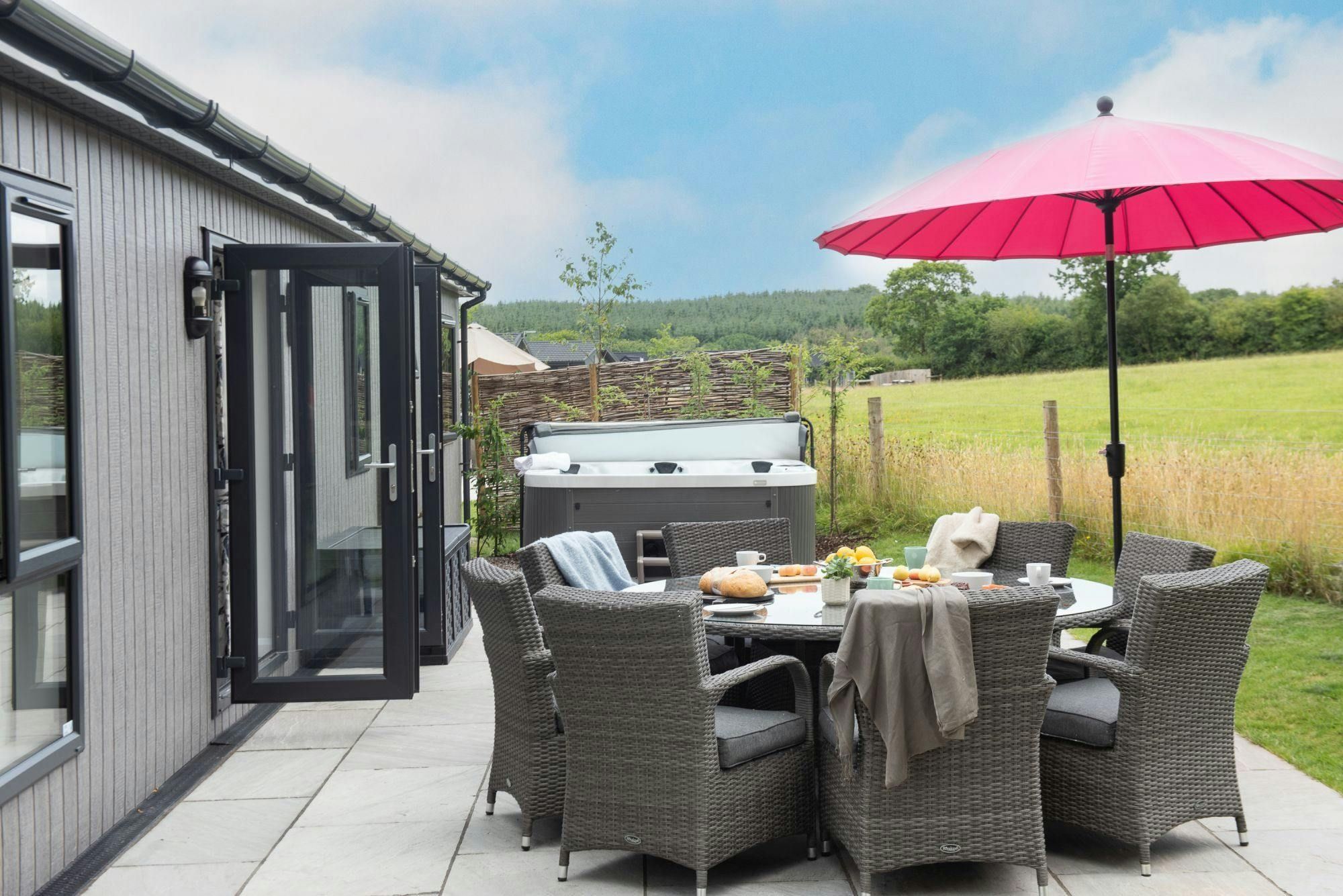 From lakeside strolls to long soaks in the private hot tub, this lodge is the ideal setting for a laidback rural escape. Nestled within a resort, you’ll find it’s just a short walk to the lake, while the water sports centre and playground are also within easy reach – making this a great option for family fun. You can also head further afield and explore the beautiful beaches of the Devon and Cornwall coast. Wherever the day takes you, this home has everything you could need to switch off and unwind. Inside, the rooms are simple and cosy, while the private terrace is a sweet spot for evening drinks and barbecues.