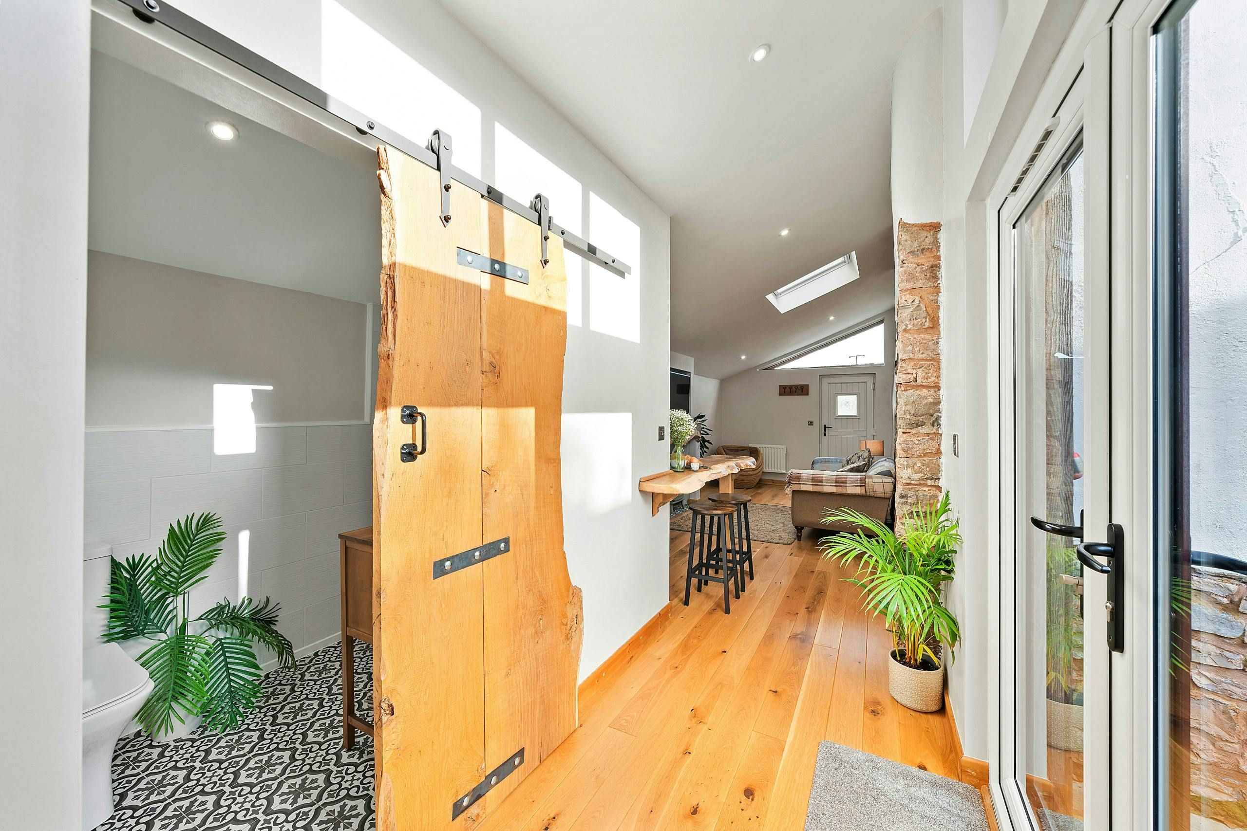 This barn conversion is tucked away near the picturesque village of Burlescombe. Sitting within an International Dark Skies Reserve, you’ll be treated to starry skies on a clear evening – the bedroom even has a stargazing window so you can view the night sky from the comfort of the suspended bed. We love the characterful features here, like the hand-crafted sliding bedroom door and the oak breakfast bar. While the kitchenette is small, it’s got everything you need to whip up a light bite or snack, and for heartier meals, you’ll find a variety of cafes, pubs, and restaurants nearby. Location-wise, you’ve got the Blackdown Hills Area of Outstanding Natural Beauty, and Tiverton with its canals and castle, within easy driving distance.