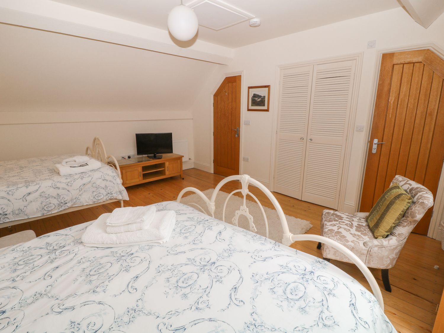 Accomodation Details Four bedrooms: 1 x ground-floor king-size bed with en-suite walk-in shower, basin and WC, 1 x sleigh king-size bed with TV and en-suite walk-in freestanding bath, walk-in shower, basin and WC, 1 x king-size bed with TV and en-suite with bath, shower over, basin and WC, 1 x twin with two queen-size and TV and en-suite with bath, shower over, basin and WC. Open-plan living room with kitchen, dining area and sitting area with electric fire. Utility