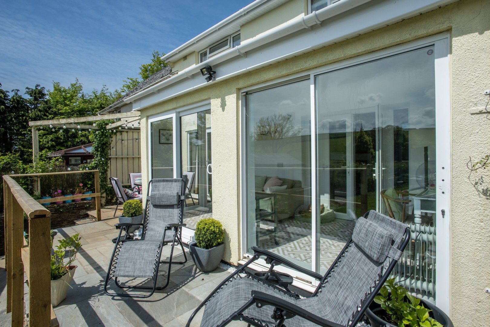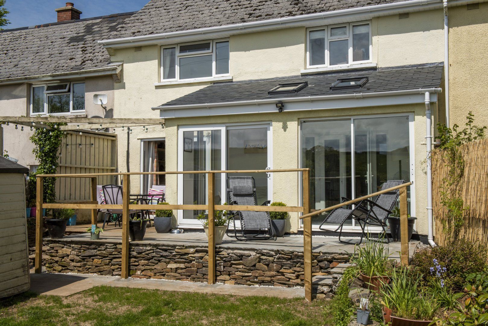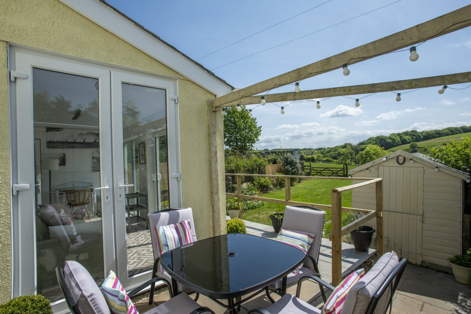 Inside the front door is a small entrance porch ideal for drying coats and muddy boots. The kitchen is to your left as you enter, and the open-plan sitting room and dining area to the right. There is a cloakroom with WC downstairs. French doors lead from the sitting room to the sun-room that makes the most of the chance to sit and enjoy the lovely view over the combe beyond the garden. A sliding door gives access to a patio that is also reached by french doors at the West end and another sliding door from the dining area.