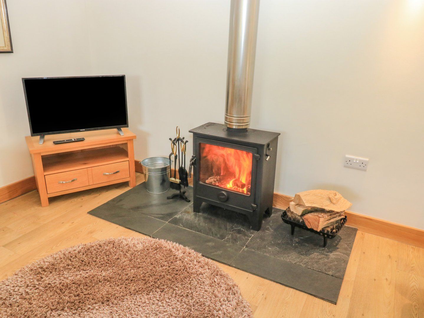 Amenities Central heating with woodburning stove. Air-Fryer Electric oven and hob, microwave, fridge/freezer, washing machine, dishwasher, coffee maker. Smart TV, WiFi. Fuel, power, and starter pack for woodburning stove inc. in rent. Bed linen and towels inc. in rent. Off-road parking for 2 cars. Side patio with furniture and barbecue. Two well-behaved small dogs, or one well-behaved medium dog welcome. Sorry, no smoking. Shop 1.3 miles, pub 1.2 miles. Note: The property is attached to the owner's home and is set on a farm with geese and ducks to the side of the annex, please keep dogs on the lead around the farm. Note: The property is only accessibly by a flight of steps. Please note: The property accepts a minimum of 3 nights in duration