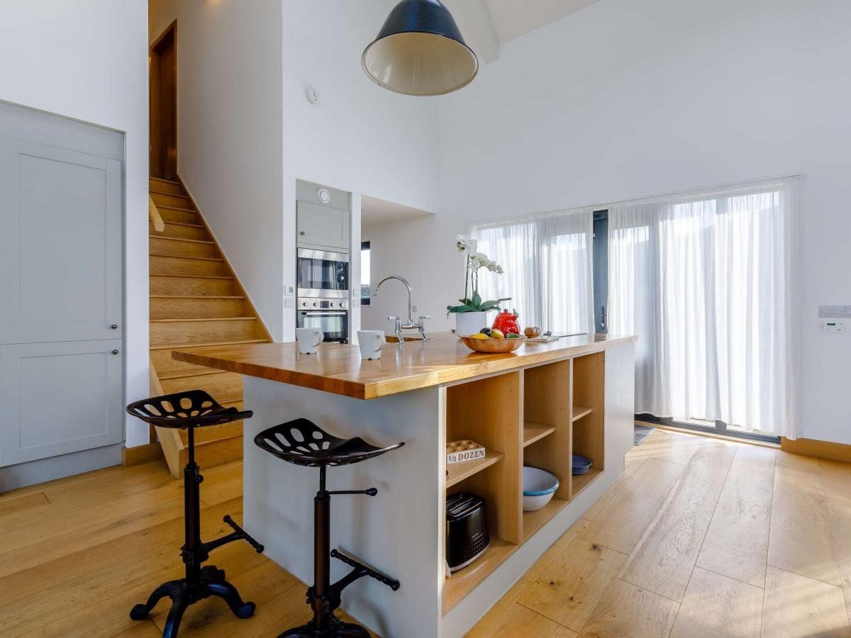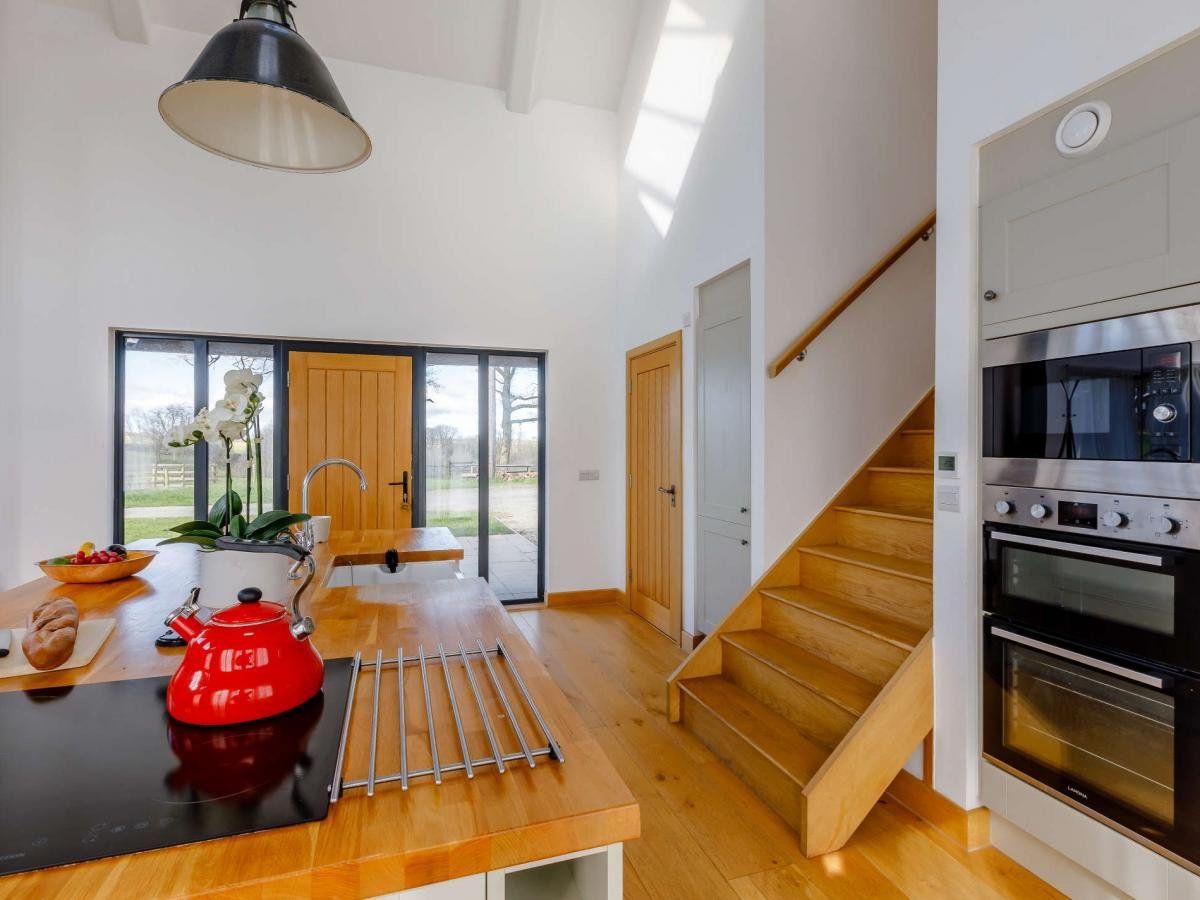 Meeting the neighbours at this property is a little different; see some of the farm animals including sheep, goats and chickens, which are all kept on-site. After a busy day in the Devon countryside, why not sit by the wildlife pond and enjoy a glass of wine, or a meal in the undercover outdoor dining area? The property has space for the whole family to enjoy, with an open-plan contemporary lounge/kitchen/diner making it a great spot to cook, eat, and unwind together.