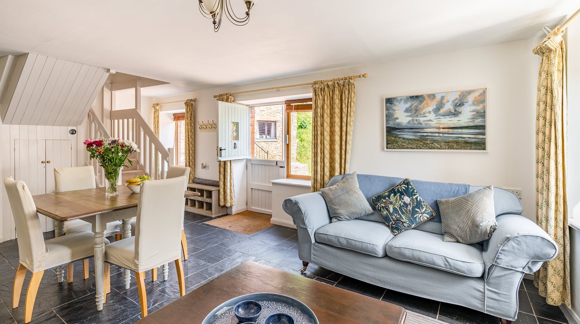 When thoughts turn to food, pick your own at the estate’s kitchen garden and greenhouse then rustle up a bite to eat at home. Or grab something from the onsite honesty shop, stocked with frozen meals, BBQ packs from the local farm shop, and lashings of ice cream. Then all that’s left to do is put your feet up and hunker down at home. With its four-poster beds and flagstone flooring, this cute-as-a-button hideaway delivers all the cottage charms you’re chasing.