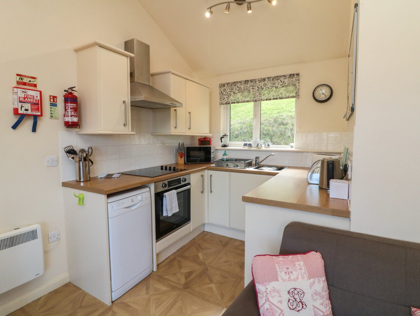 The living areas in this holiday lodge consist of an open-plan living space with kitchen equipped with oven, hob, microwave, fridge/freezer and dishwasher, a dining table for four and a sitting area with TV. The bedrooms consist of a double and a twin serviced by a bathroom. Outside there is a decked terrace with furniture. An allocated parking space in the car park. Within 0.4 miles there is a shop, 0.2 miles a pub and 1.1 miles a beach. Highchair and travel cot available on request. Two well-behaved dogs welcome, but sorry, no smoking. Fuel, power, bed linen and towels are all included in the price. Explore all Devon has to offer from Chalet Log Cabin L12. Wifi is available in the office and bar areas only. Note: There are several steps up to the lodge; please take care. Note: Guests have access to a shared, on-site launderette and a children's play area. Note: Check-in from 4pm, check-out by 10am. Note: Sunday arrivals are not permitted