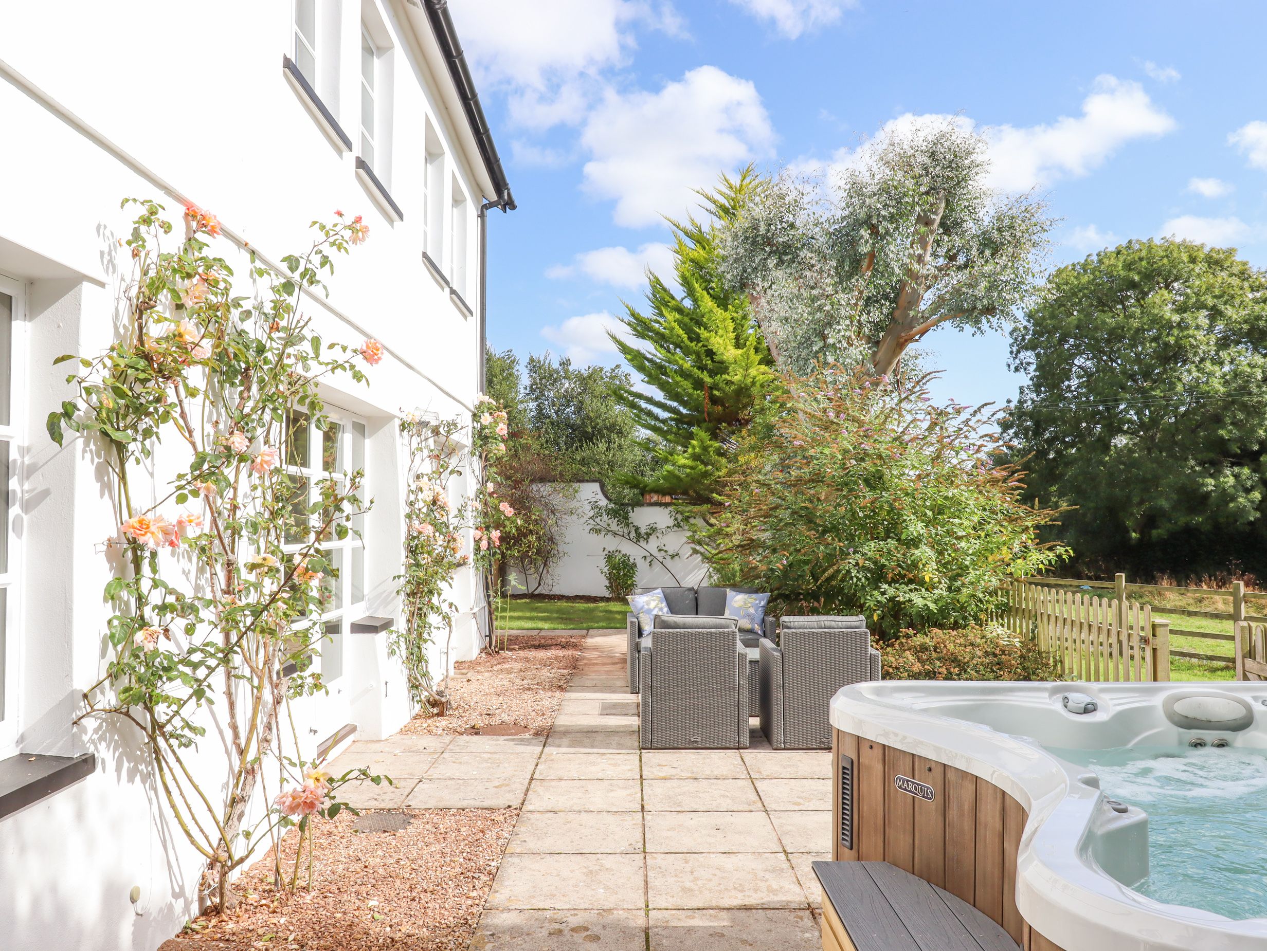 Holiday home Culver Court Cottage has two bedrooms: a double with an en-suite walk-in shower, basin, heated towel rail, and WC, and a twin with an en-suite bath, handheld shower, basin, and WC. There's also a cloakroom. The cottage has a well-equipped kitchen, a utility room, a dining room, and a sitting room with a woodburning stove. The property is heated by LPG and includes amenities like an electric oven and hob, an LPG AGA, a microwave, a fridge/freezer, a washing machine, a tumble dryer, a dishwasher, a Smart TV, and WiFi. Fuel, power, bed linen, towels, and a starter pack for the woodburning stove are included in the rent. A highchair and travel cot are available. Outside, there is allocated parking for two cars, an enclosed front patio with furniture, a hot tub, and a small grassed area. Two well-behaved dogs are welcome, but please keep them on a lead near the grassed area as there is livestock nearby. No smoking is allowed. The nearest shop is 2 miles away, and the nearest pub is 2.3 miles away. Make memories at Culver Court Cottage.
