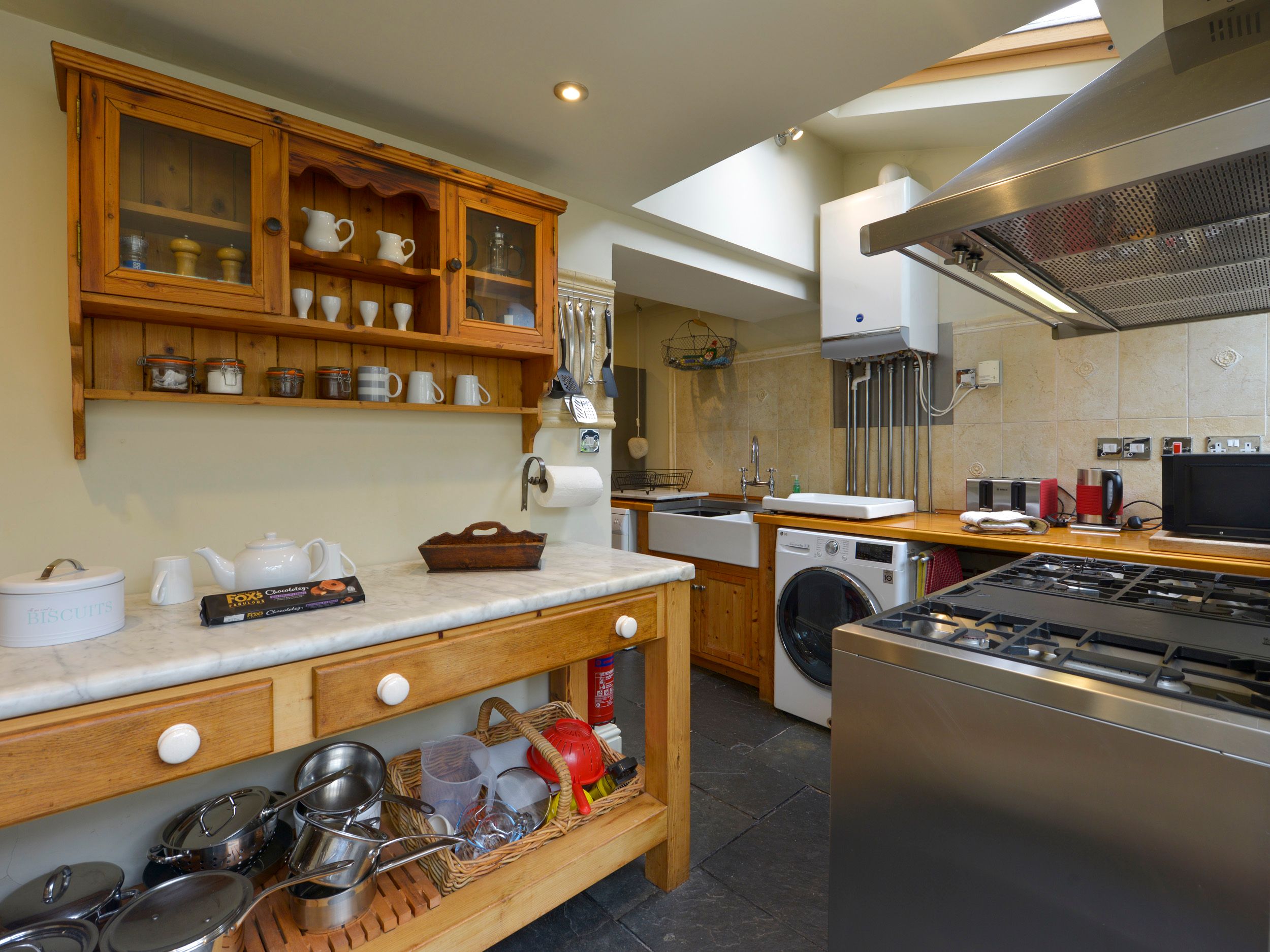 The kitchen: I have never seen a rented accommodation with such an array of high quality appliances, especially the cooker. It's the same make as ours but with one more burner (6) and a warming plate. Great fun!