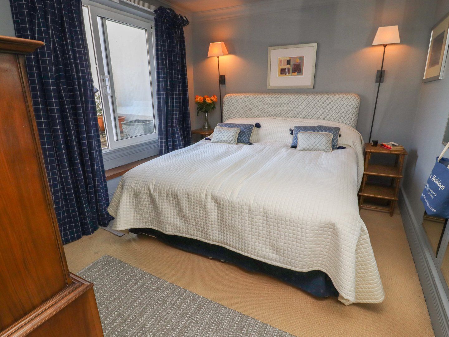 Two bedrooms: 1 x super-king-size with TV, 1 x ground-floor single. Bathroom with bath, shower over, basin and WC. Cloakroom with basin and WC. Kitchen/diner. Sitting room with woodburner