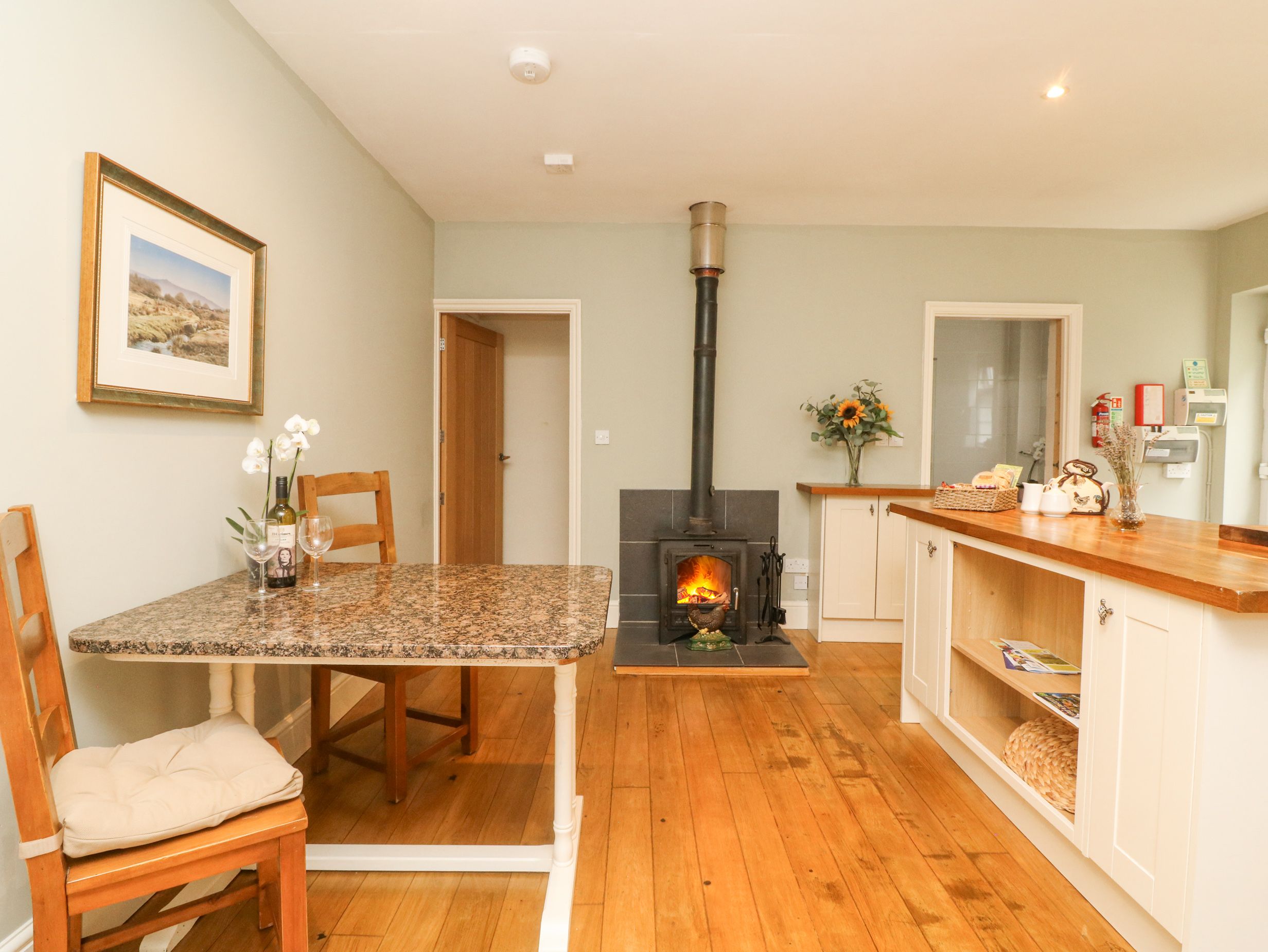 Amenities Electric heating with woodburning stove. Range cooker and hob, microwave, fridge with ice-box, freezer, washing machine, tumble dryer, wine cooler. TV, DVD player, CD player, Wifi, pool table, football table. Fuel and power inc. in rent. Bed linen and towels inc. in rent. Travel cot and highchair available on request. Off-road parking for one car. Communal garden area with patio and furniture. One well behaved dog welcome. Sorry, no smoking. Shop 1.4 miles, pub 1 mile. Note: The utility room with washing machine, tumble dryer and freezer is shared with the other cottages. Note: There are free range chickens on-site, dogs will need to be kept on the lead on grounds