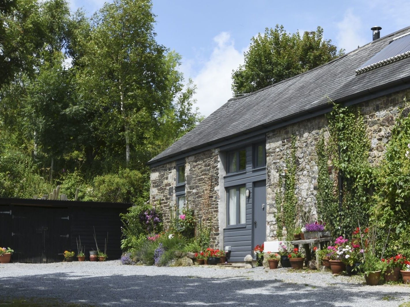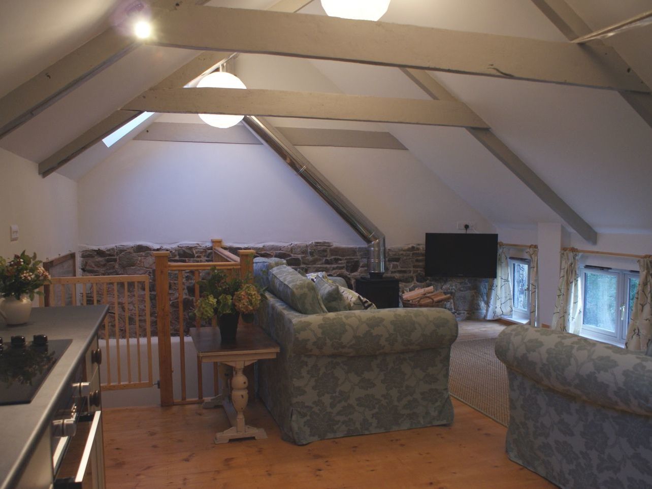We stayed at The Stone Barn Cottage in June 2014. Holne is a hamlet towards the south of Dartmoor National Park, about 10-15 minutes’ drive from the main A38 road, so fairly convenient to explore the beautiful national park, where we found some lovely picturesque walks in the undulating moorland. Holne has a pub and shop/tea room within a few minutes’ walk from the barn. The converted barn is really semidetached with the owners and their very friendly dog living next door; they are a very pleasant and helpful couple who keep the cottage and the large garden in a good and clean condition. The barn is upside down but works very well; parking is immediately outside the barn where the entrance door leads into a hallway with the 3 bedrooms downstairs off the hallway, which then leads to a flight of stairs to the first floor, where it is open plan; kitchen, dining and lounge area. Then 3 or 4 more stairs lead from the kitchen/dining area up to the large private garden, where there was plenty of space for our two dogs to run around. The large garden is secured by a farm type wire fence about 4 foot high, so for most dogs it is fine. The barn is at the end of the hamlet and is in a very quiet location, with only the odd vehicle passing by and some nice countryside views. There was only the two of us so the open plan area was fine for us but it might be a little cosy if there were 6 adults though. It has everything you’d expect; comfortable seating, large Freeview TV, good sized table, dishwasher, fridge/freezer, washer/dryer, loads of cutlery, plates, mugs/cups etc. The bedrooms were a good size and all had their own bathroom/toilet with really powerful hot showers. All floors including the stairs are wooden throughout, so if you have an old or small dog, they may struggle a little as the wood can be slippery for paws. The barn was converted only about 18 months ago, so the fixtures/fittings/décor is in good condition and to a good standard that you’d expect for the price and for new accommodation. You can only book this cottage through Helpful Holidays Ltd so they take their cut in the price of course but it was value for money. We’ll be back next year if they’ll accept us again! So would definitely recommend this accommodation.