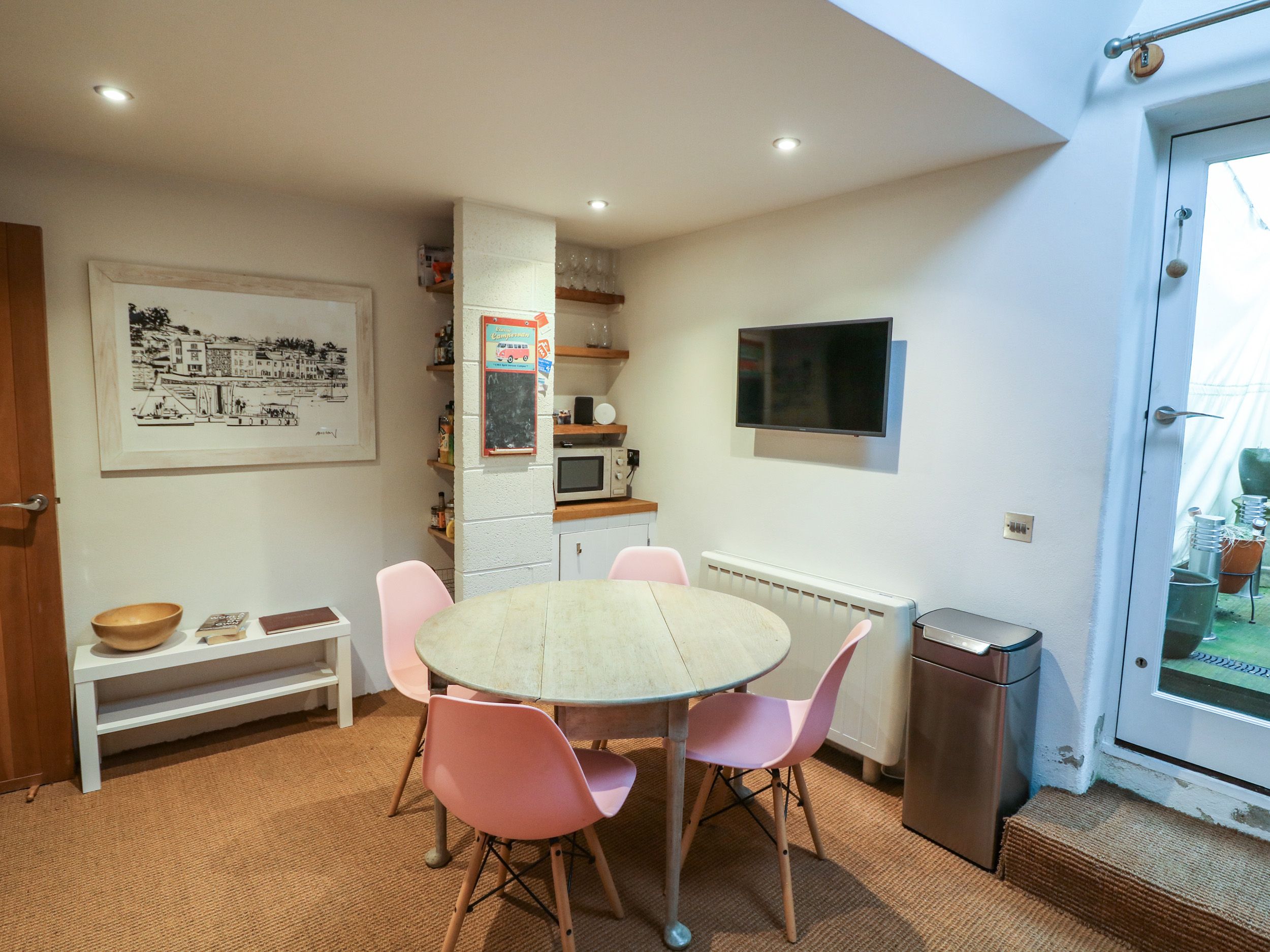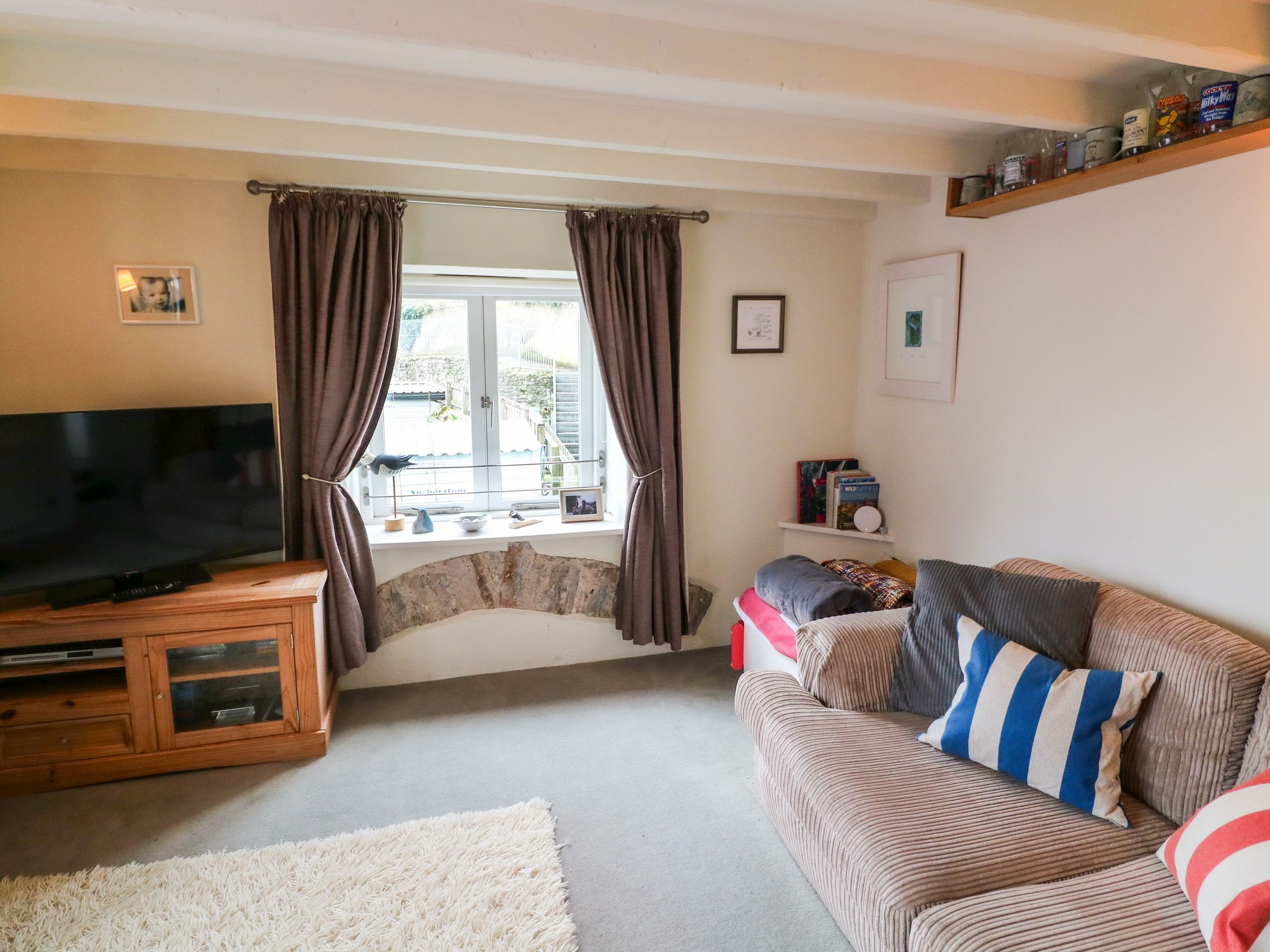 Amenities Electric Central heating. Electric oven and hob, microwave, fridge, washing machine, kettle, toaster. Smart TV, regular TV, DVD player, WiFi. Fuel and power Inc in rent. Bed linen and towels Inc in rent. Enclosed rear decking with furniture. One small dog welcome. Sorry, no smoking. Shop 5.9 miles, pub 0.1 mile. Note: There are narrow stairs inside, please take care.