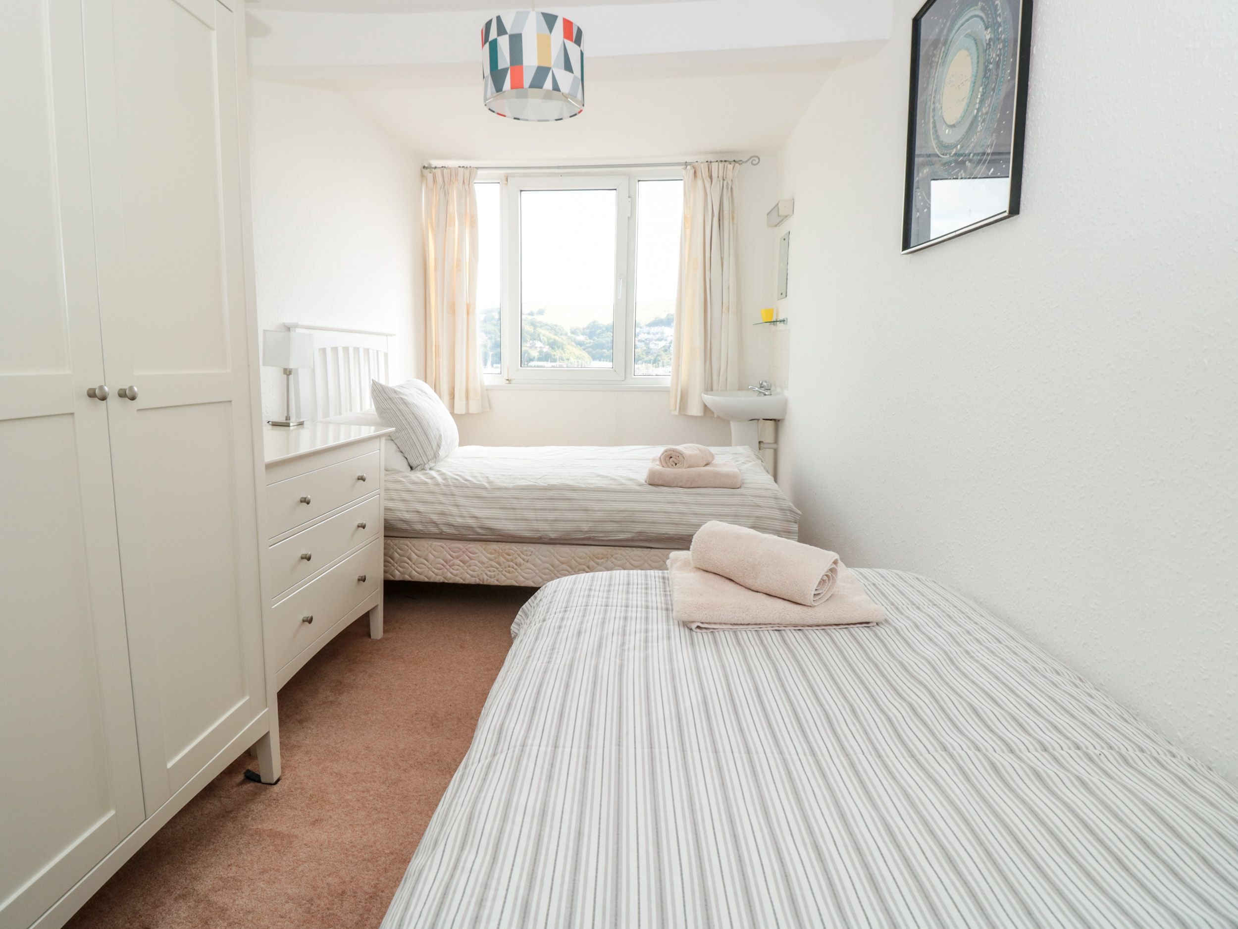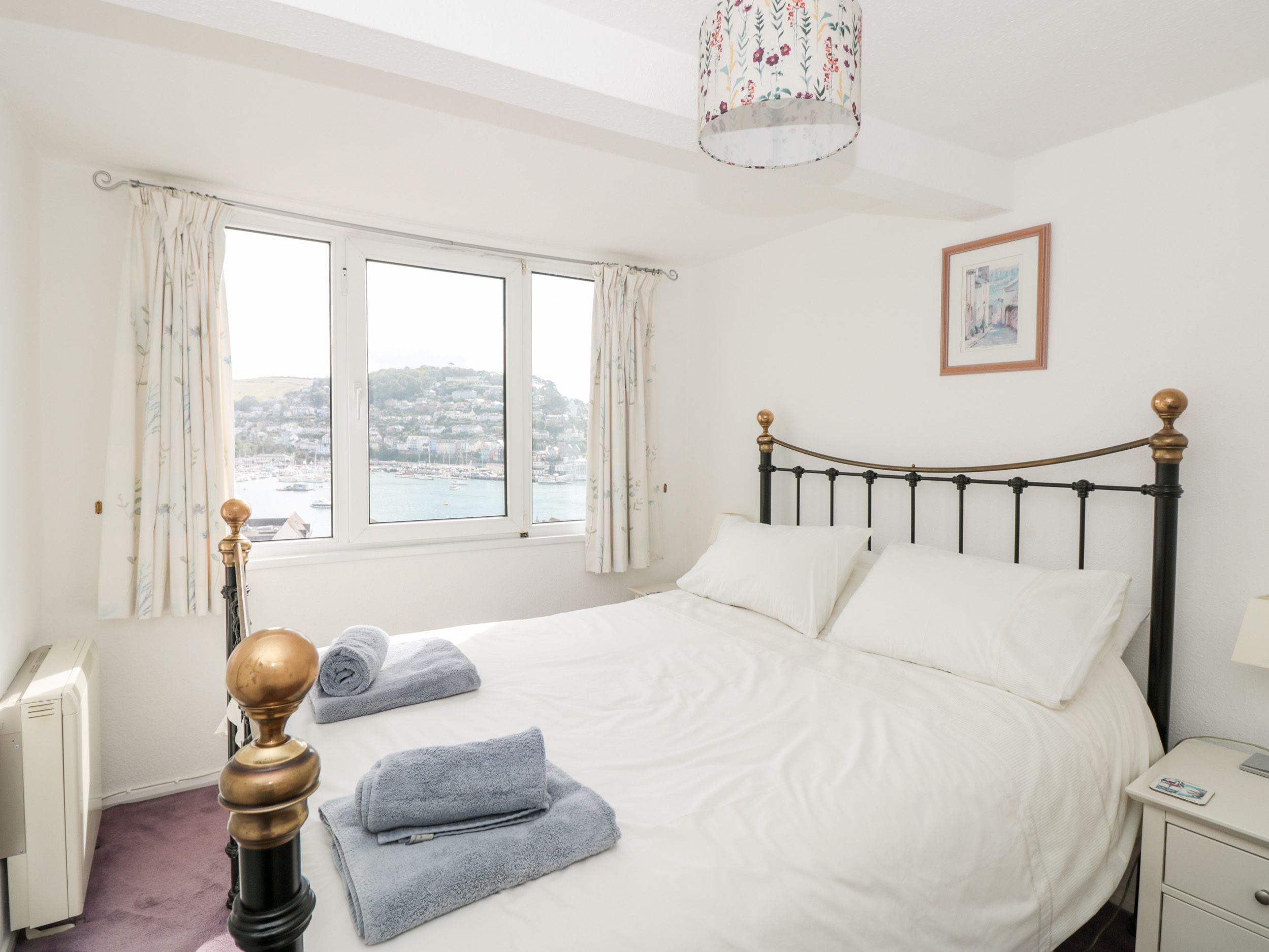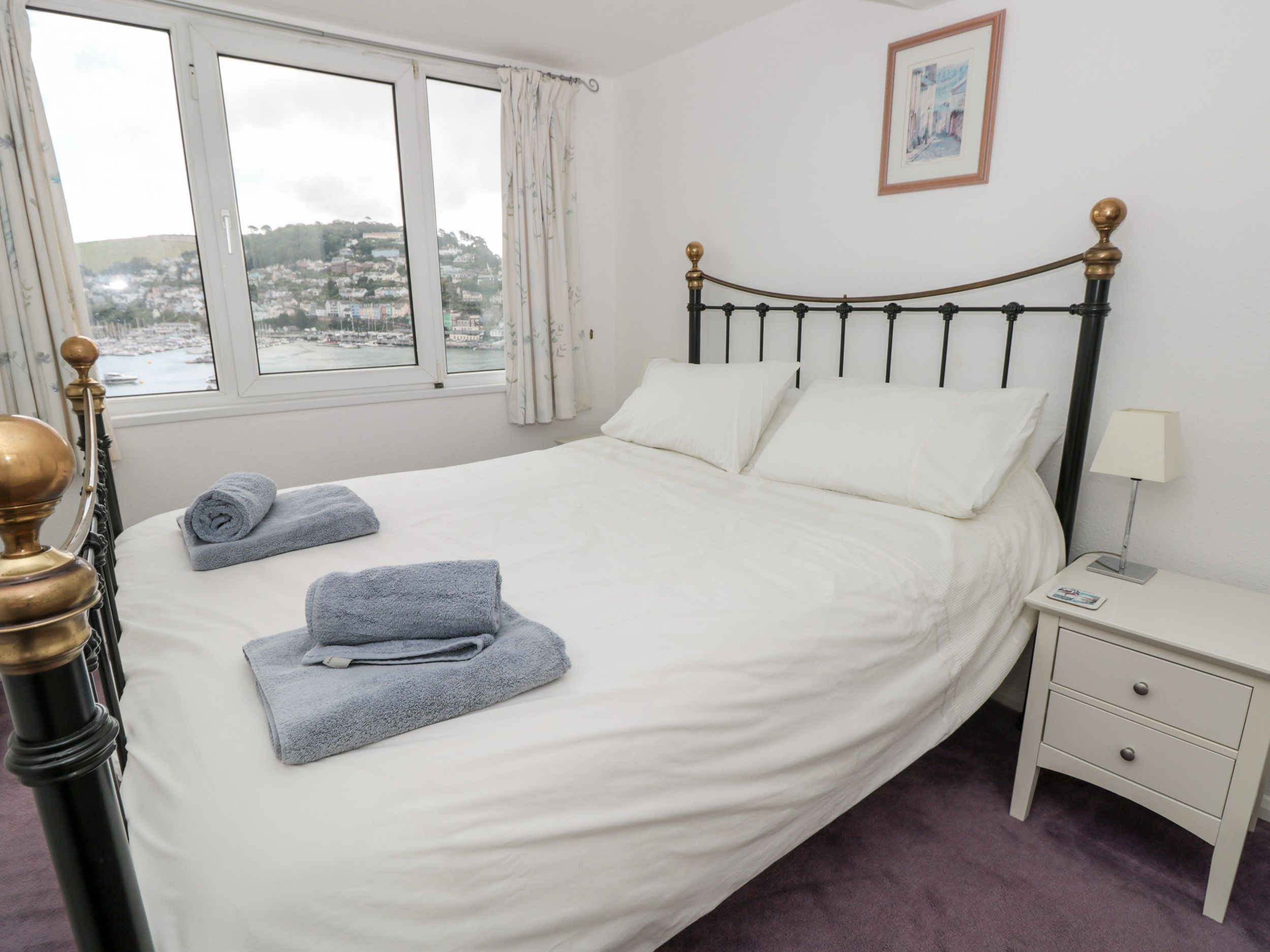 Holiday home 21 Above Town is a lovely duplex apartment, boasting fantastic river views across to Kingswear, in the town of Dartmouth. The property has three bedrooms; a king-size double, a second--floor double with en-suite shower room and a second floor twin, sleeping six guests. There is a family bathroom with bath and walk-in shower, a kitchen and a living/dining room with electric fire and a balcony. There is garage parking available for one car. 21 Above Town is a lovely base for exploring the South Devon AONB.