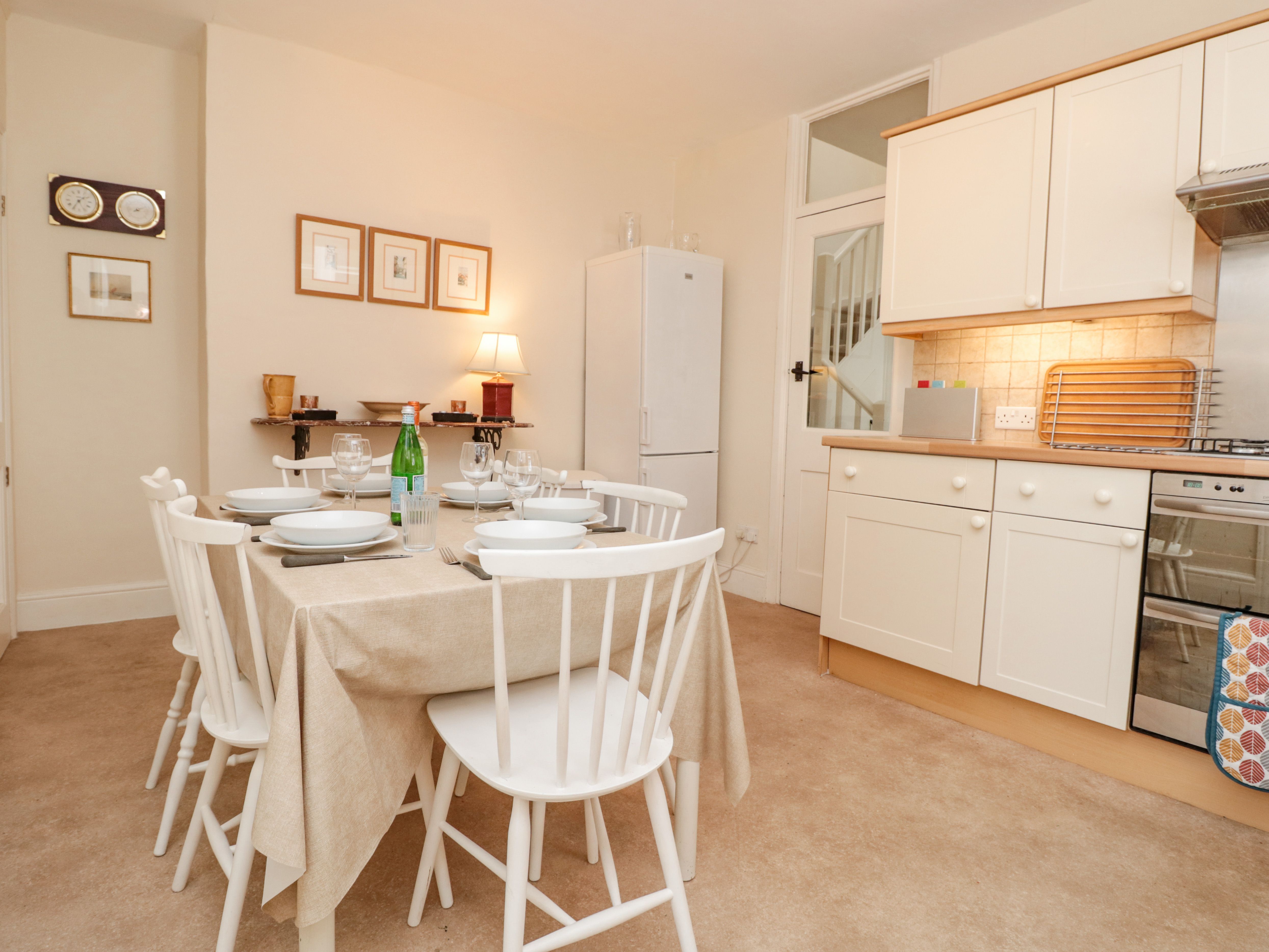 Amenities Gas central heating. Electric oven and grill, gas hob, microwave, fridge/freezer, washing machine, dishwasher. TV, DVD, WiFi. Fuel and power inc. in rent. Bed linen and towels inc. in rent. Parking available in nearby car park, permit provided. Sorry, no smoking. Shop, pub and beach 0.1 miles. Note: Property is accessed via a set of external steps which may not be suitable for guests with lower mobility. Note: The property is suitable for 4 adults and 2 children, but can accommodate 6 adults if required, with 2 in the bunk beds.