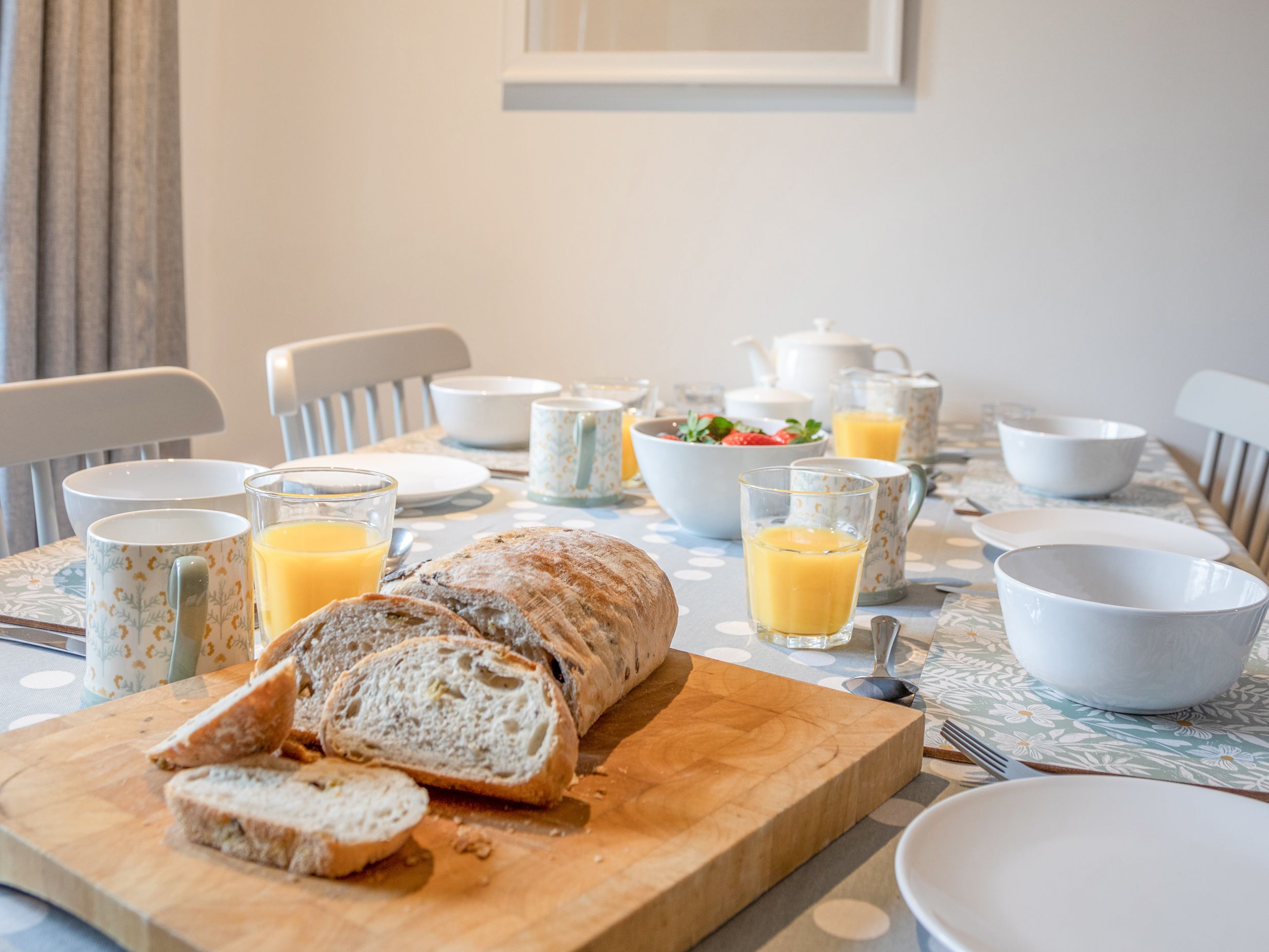Underfloor heating (ground-floor only). Electric oven and hob, microwave, fridge/freezer, washer/dryer, dishwasher, Lavazza coffee machine. TV, WiFi. Fuel and power inc. in rent. Bed linen and towels inc. in rent. Highchair and stairgate available. Parking available. Enclosed front decked terrace with furniture. Sorry, no smoking. Shop 2.1 miles, pub 1.4 miles, beach 3.8