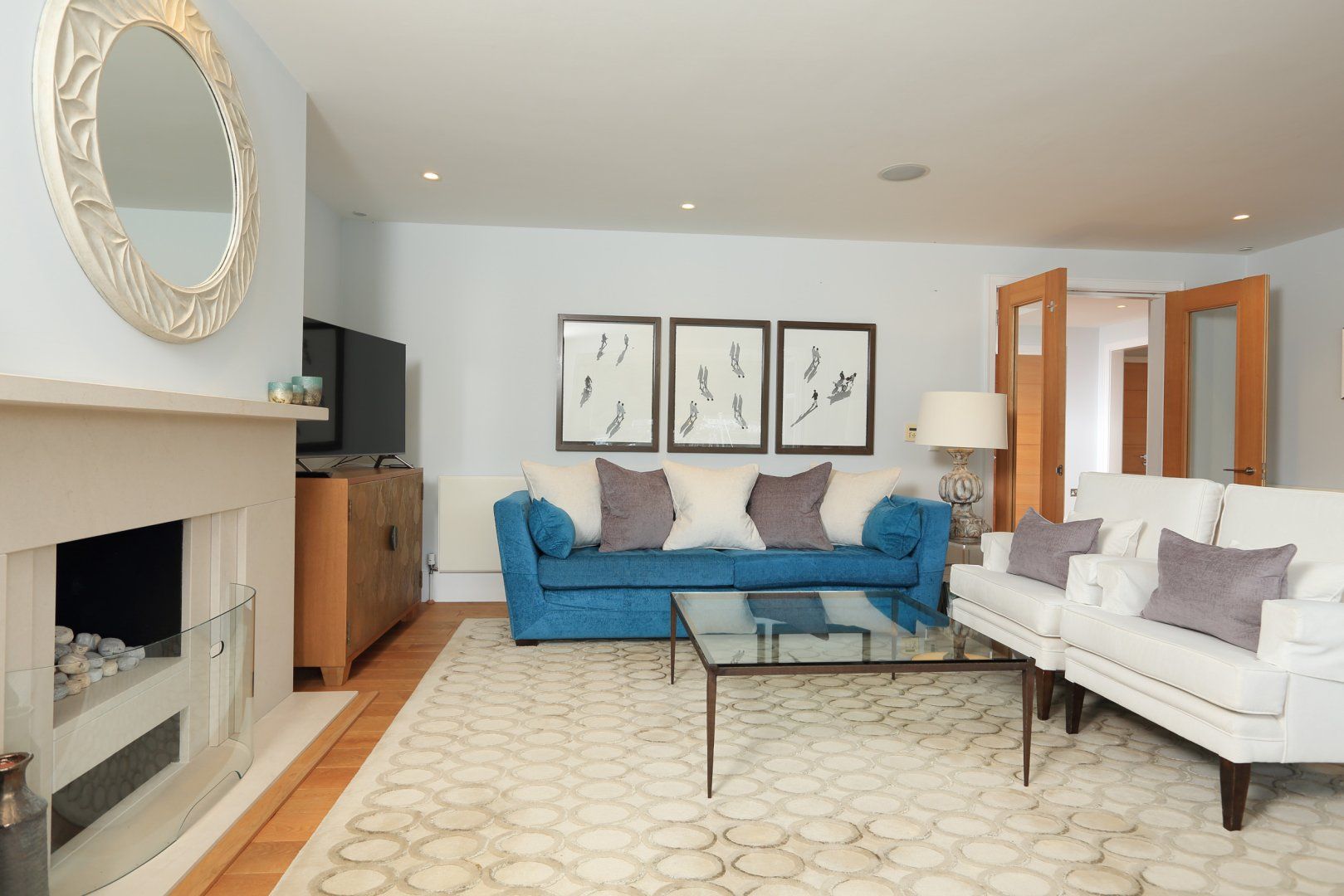 Free wireless broadband internet is available. Smart TV with Freeview and a multi-room music system.