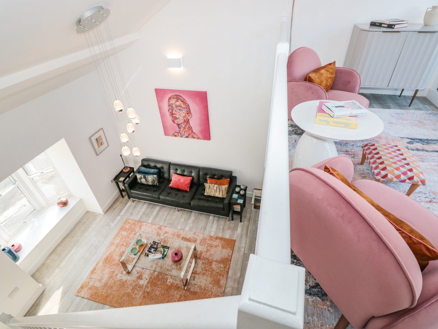 Three bedrooms: 1 x king-size with en-suite walk-in shower, basin and WC, 1 x ground-floor double with en-suite walk-in shower, basin, heated towel rail and WC, 1 x ground-floor double with en-suite bath, shower over, basin and WC. Cloakroom. First-floor open-plan living space with kitchen, dining area and sitting area. Utility. Second-floor mezzanine-style snug.