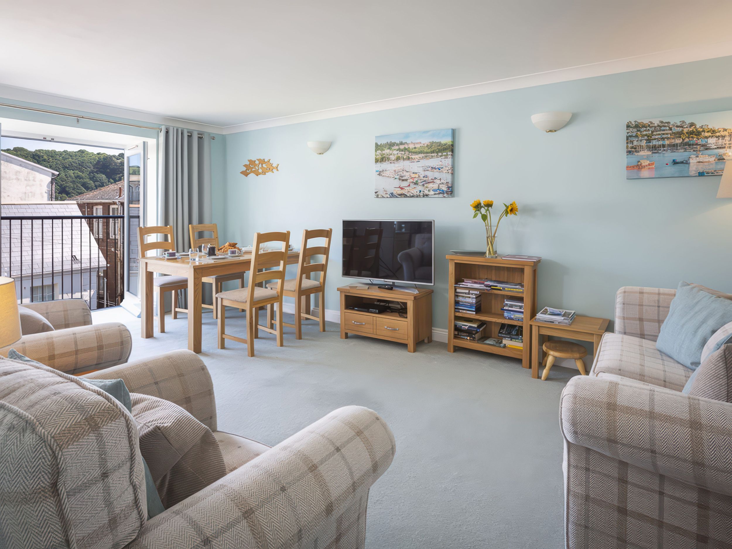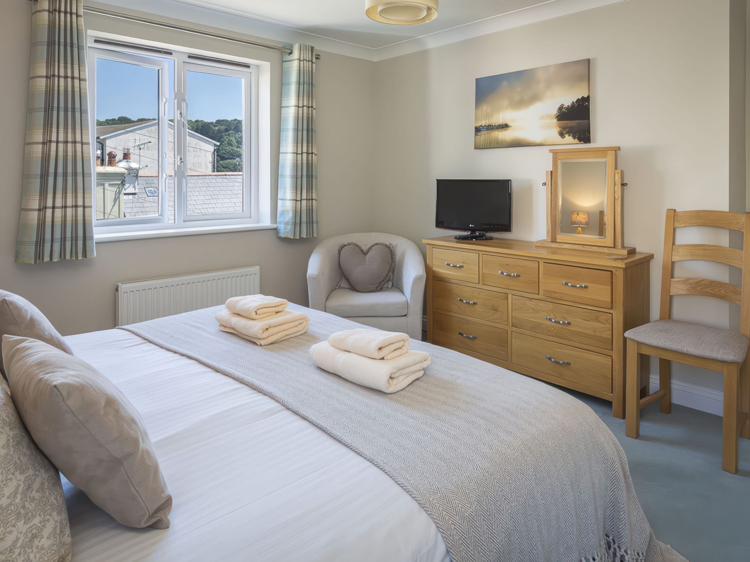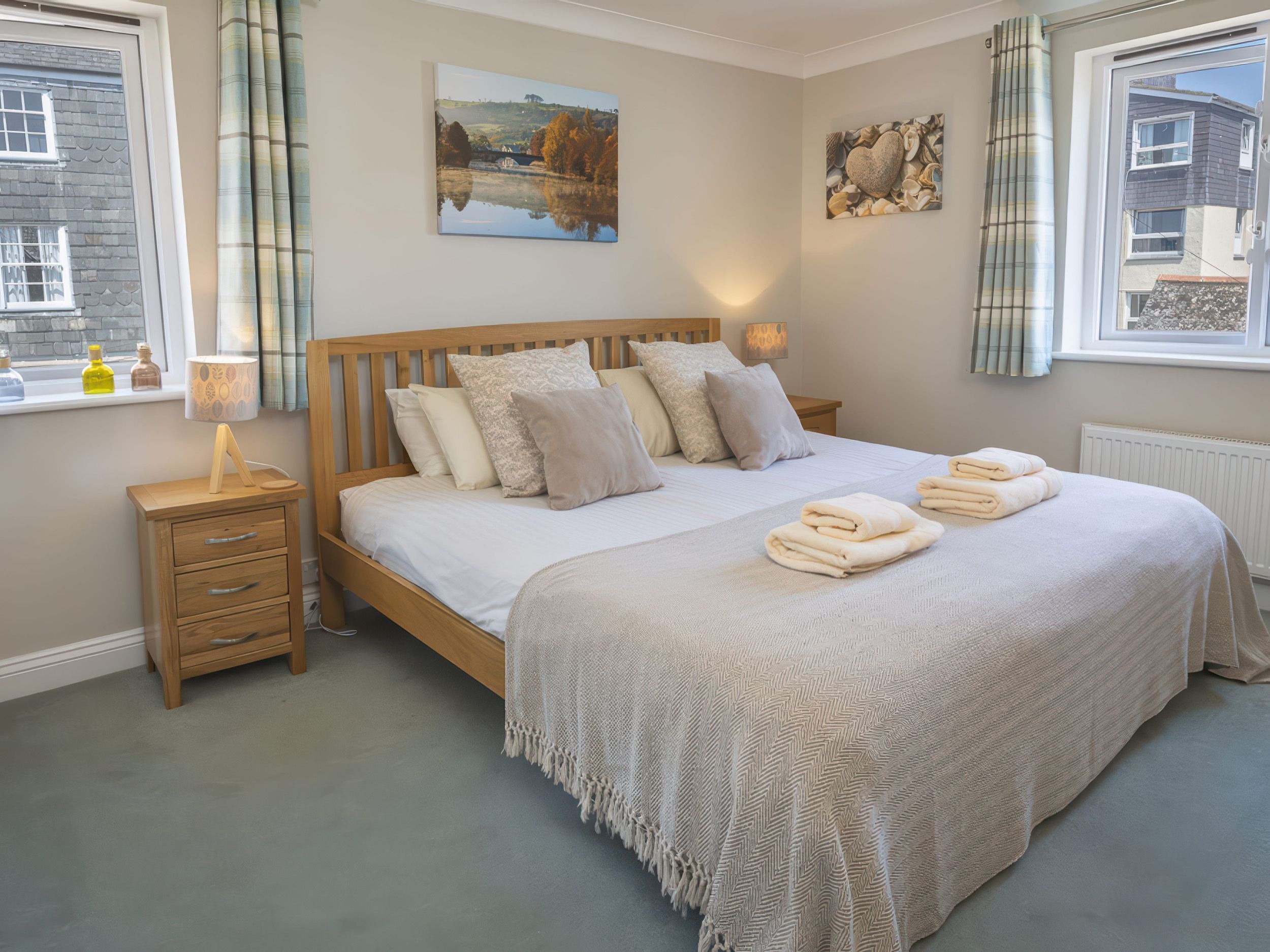 Holiday home Baker’s Dozen, 13 Dartmouth House is a second floor apartment in a central Dartmouth development, with two spacious bedrooms sleeping four guests. The open plan living, kitchen and dining room has a Juliet balcony with countryside views. A short, level walk from shops, restaurants and the waterfront, Baker’s Dozen is ideal for a couple or family looking to explore the harbour town of Dartmouth and the River Dart.