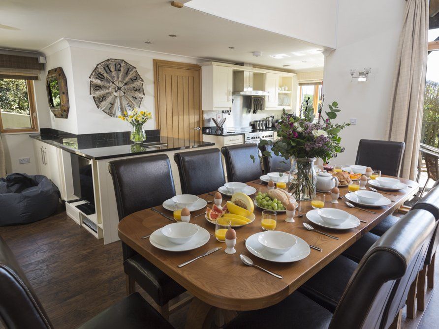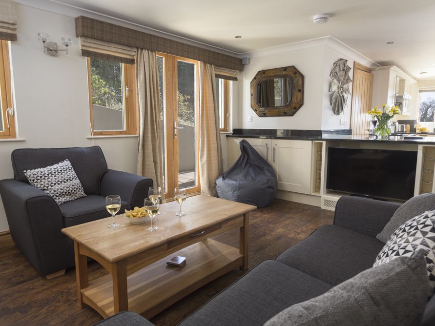 Holiday home A spacious and luxurious detached holiday home, Court Lodge accommodates up to 10 people at Hillfield Village, near historic Dartmouth. The property has five bedrooms – on the ground floor are one en suite double room with King-size beds, and two twin bedrooms, one with en suite, and on the first floor are two further bedrooms (one King-size double en suite, and one en suite bedroom with twin single beds).There is also a family bathroom with whirlpool bath and stereo system. The property also has a large private outdoor hot tub, an open plan dining/living room, a beautiful handmade kitchen and utility room, and a fabulous first floor ‘gallery’ seating area. Guests can enjoy the use of Hillfield Village’s children’s play area, all-weather tennis court and beautiful gardens. Court Lodge is a wonderful, luxurious holiday property for a group getaway with friends or family.