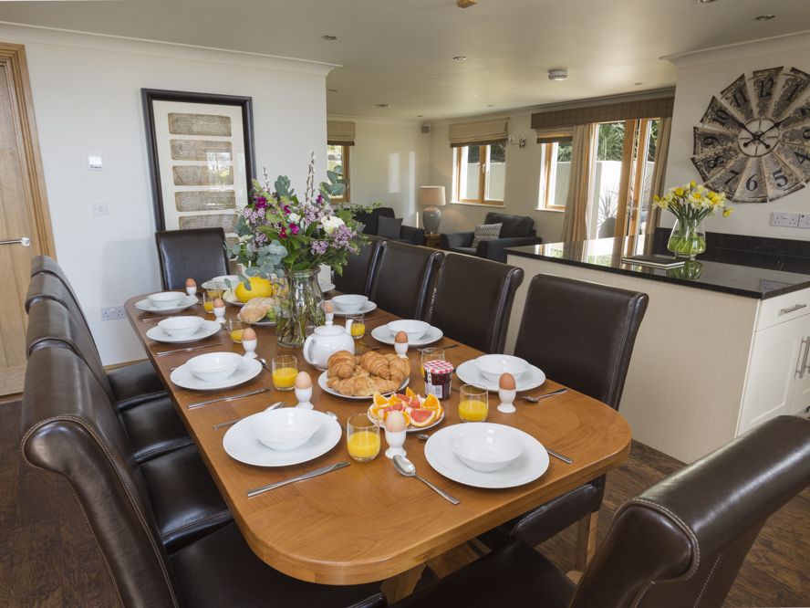 Accomodation Details Five bedrooms: 2 x King-size with en suite shower room has a shower, shaver socket, illuminated heated mirror and heated towel rail. 3 x twin rooms, two with en suite shower rooms with shower, shaver socket, illuminated heated mirror and heated towel rail. Open plan kitchen/dining area. Living room. Separate utility room. Family bathroom on the ground floor complete with whirlpool bath and hand-held shower, shaver socket, illuminated heated mirror and heated towel rail. Gallery with spacious seating area.