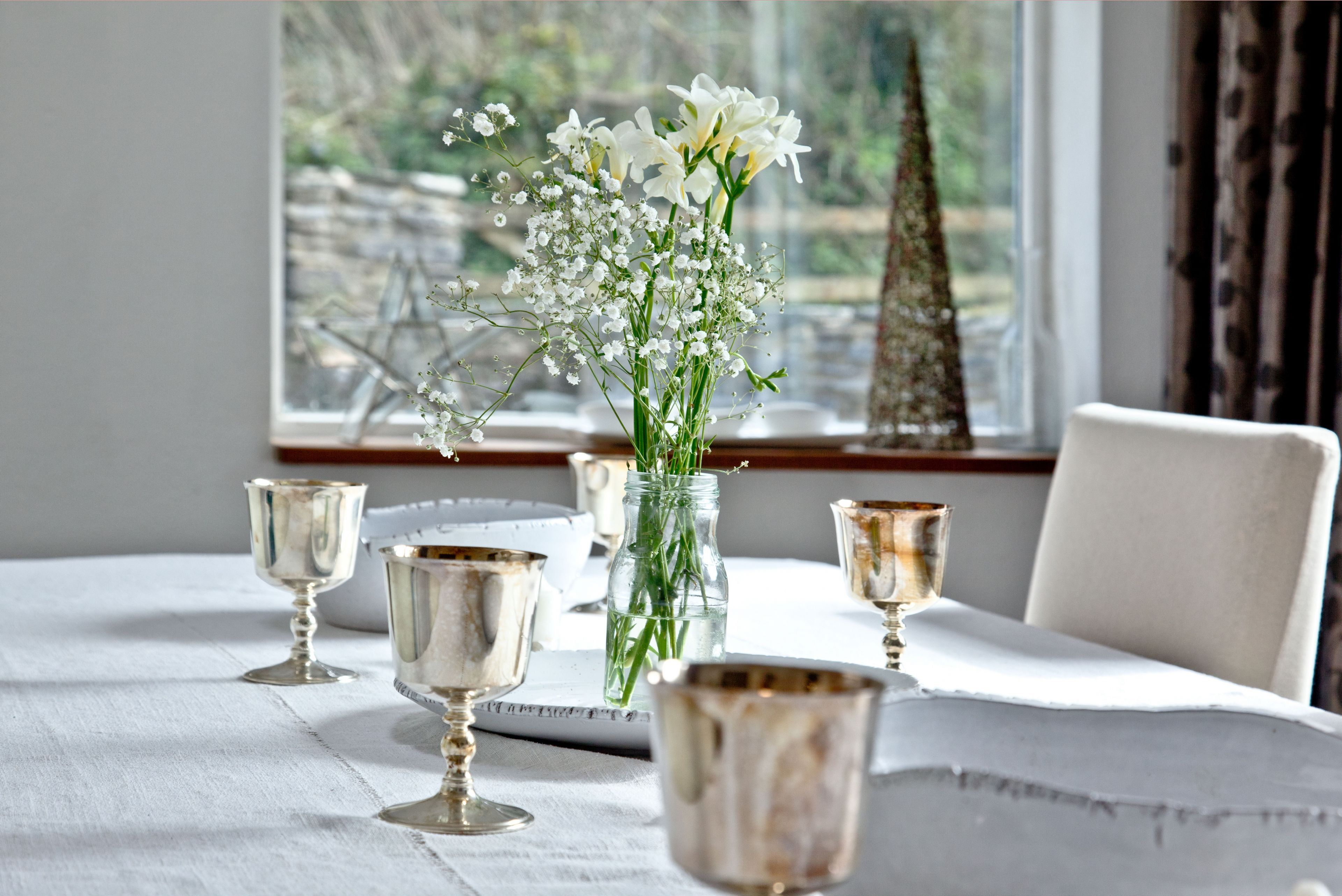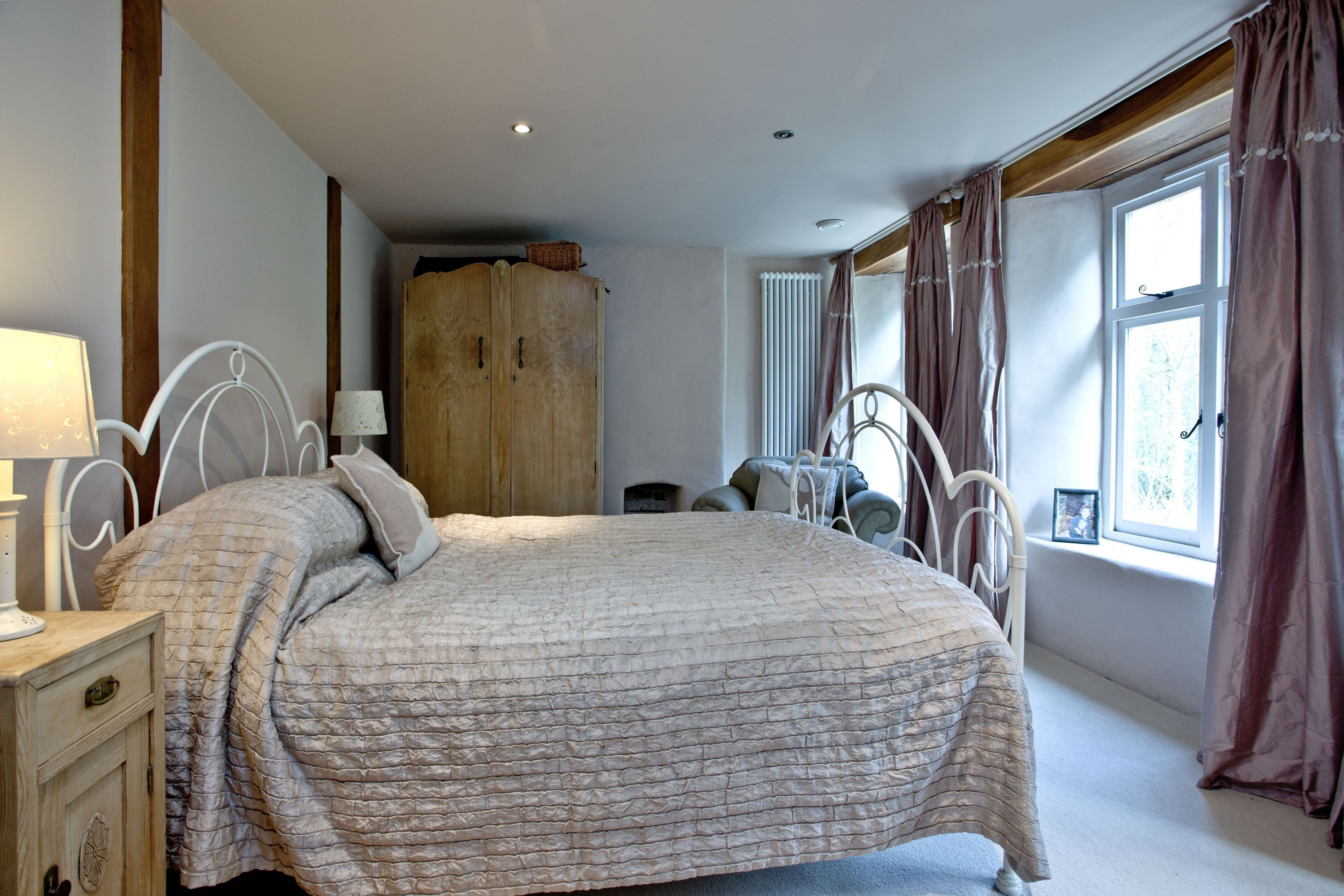 Central island with a breakfast bar and two stools. Range cooker, washer, dryer and microwave. Kitchen table with three chairs. Iron and highchair are available.Master Bedroom