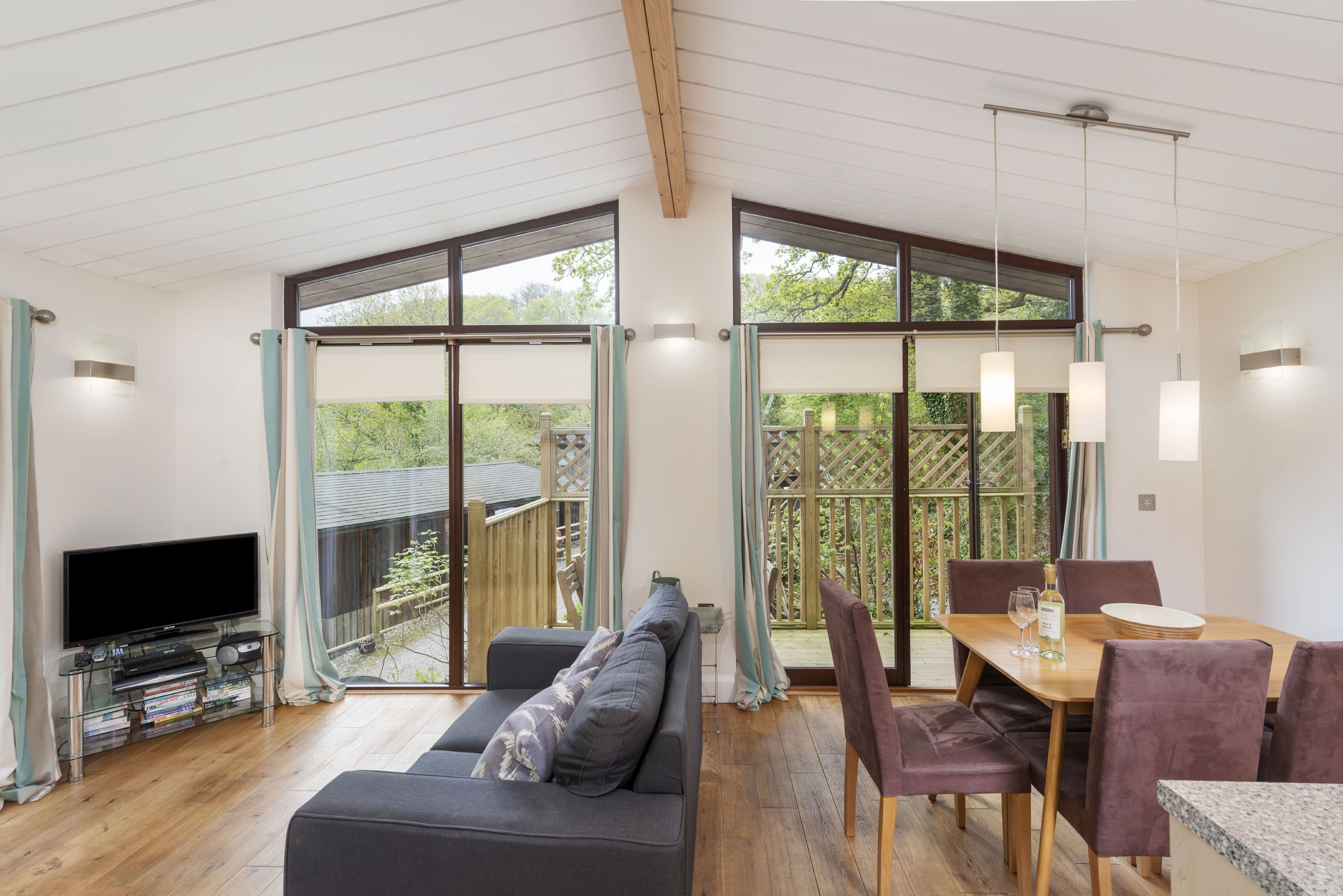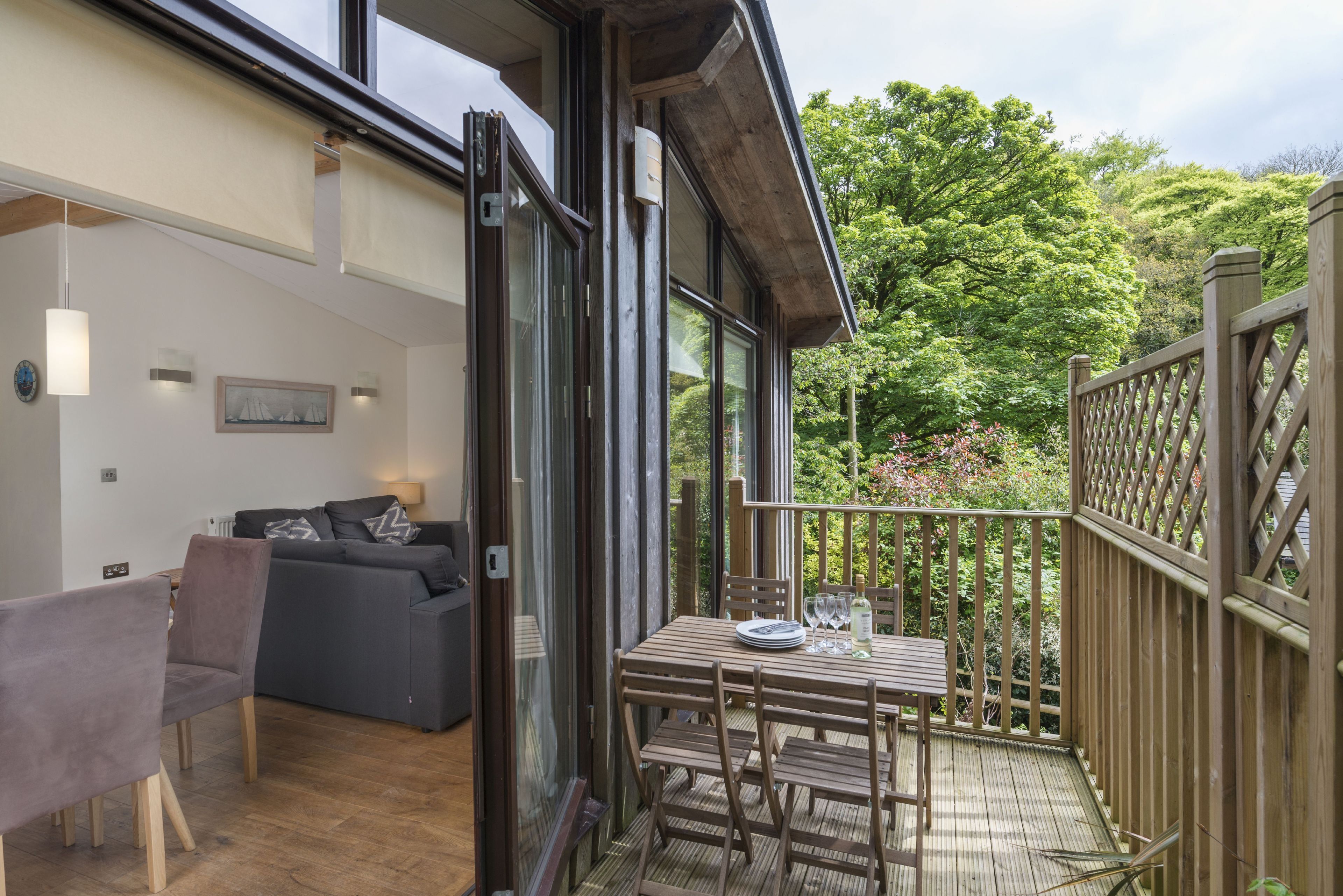 Private decked balcony with table and chairs. Hot tub. Use of communal area and goat meadow. Parking for one car.