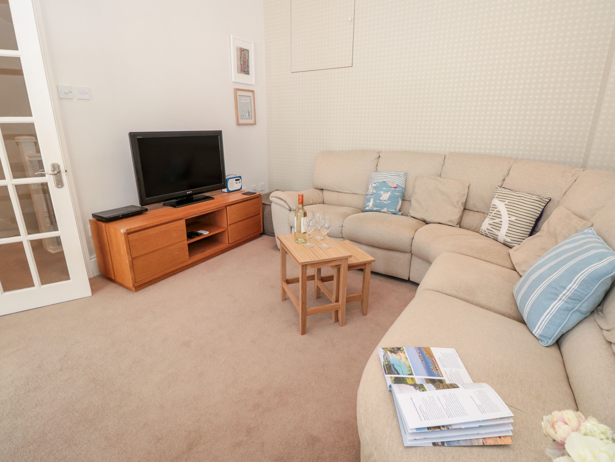 Gas central heating. Electric oven and hob, fridge, microwave, dishwasher, washing machine, Smart TV, DAB radio/Bluetooth speaker and WiFi. Fuel and power inc. in rent. Bed linen and towels inc. in rent. Off-road parking for one car. Balcony with seating. Sorry no smoking. Up to two small dogs accepted at a charge of £25.00 per dog. Shop and pub 0.2 miles. Note: This property is not suitable for those with mobility issues due to it having two flights of stairs and is for a maximum of 4 guests.