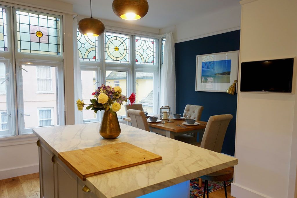 Located in the centre of Dartmouth and set within one of the town’s oldest and most characterful buildings, this beautifully renovated apartment puts you in an ideal position to get the most out of this Devonshire beauty spot. Though the building’s exterior looks Tudor in style, you’ll have nothing but modern comforts once inside.