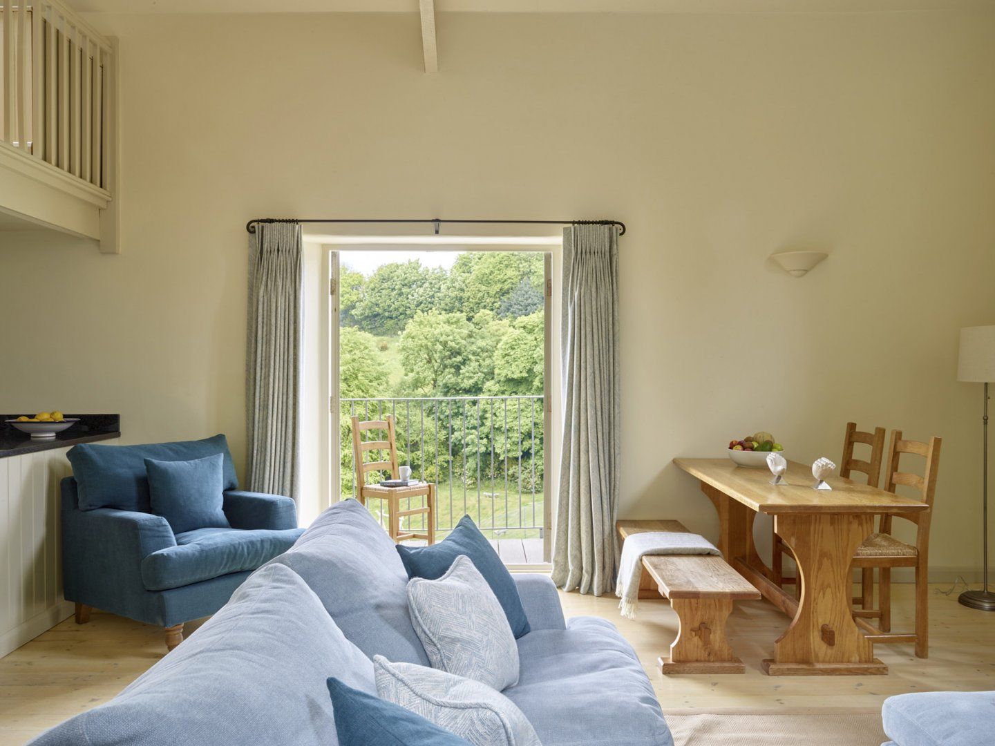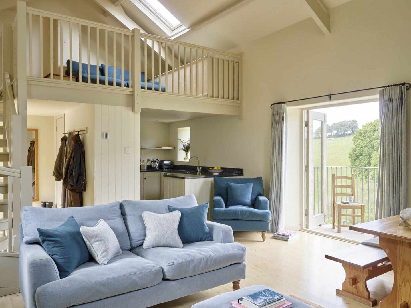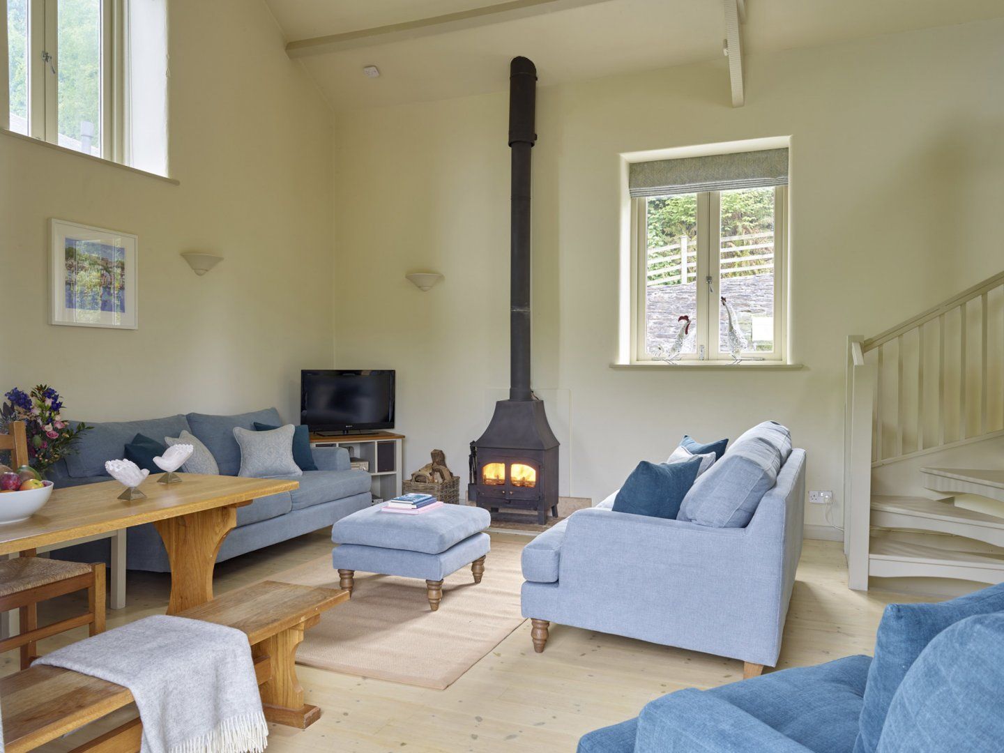 Accomodation Details Three bedrooms: 1 x ground-floor twin) with en-suite walk-in shower, basin and WC, 1 x ground-floor L-shaped cabin bed (for under 12s) and 1 x ground-floor small double. Ground-floor bathroom with bath, shower over, basin and WC. Open-plan living space with kitchen, dining area and sitting area with woodburning stove. Mezzanine-style snug with sofa bed Lovely walled patio.