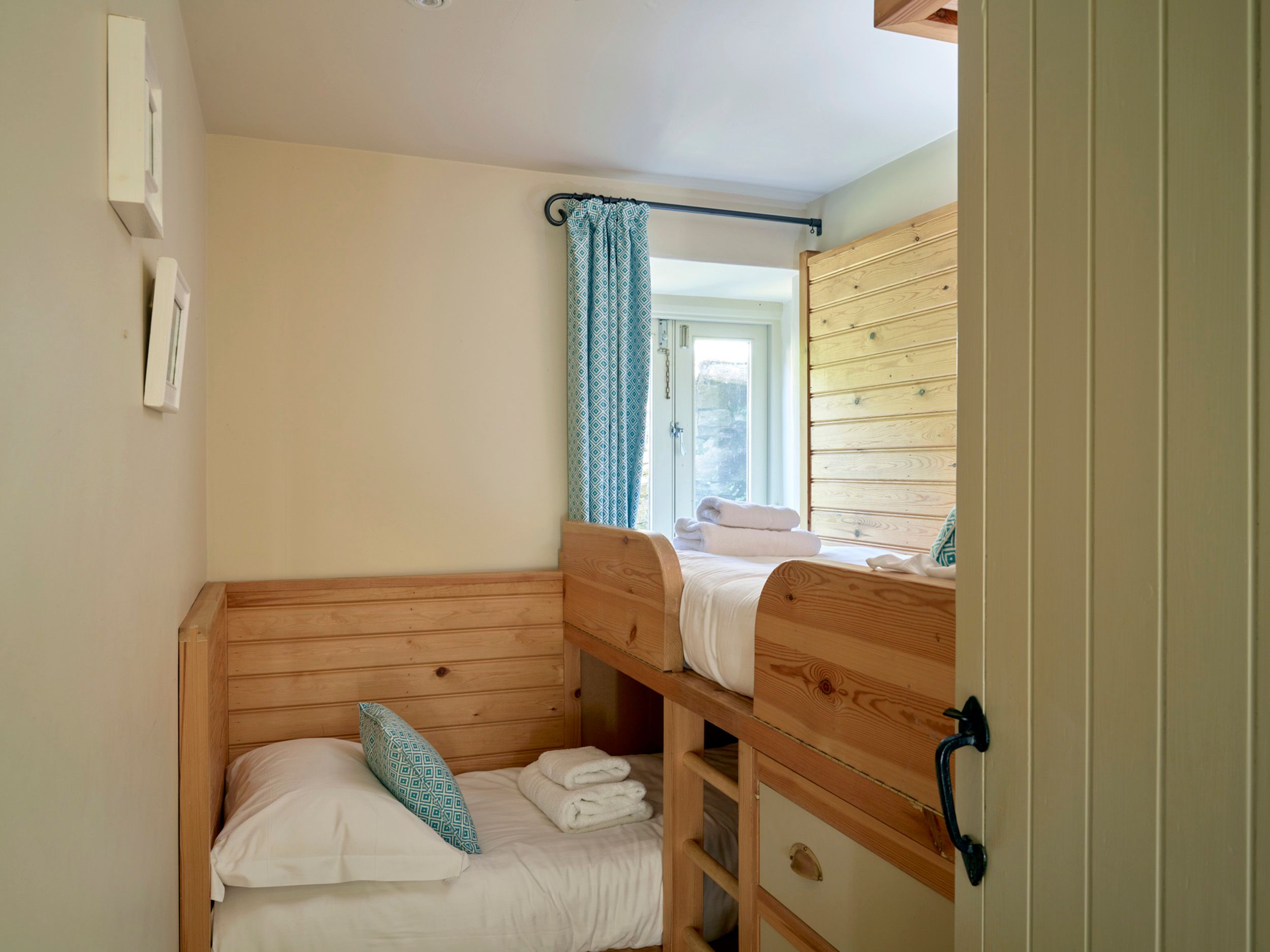 Holiday home Maristow is a luxury end-terrace cottage sitting in Cornworthy near Blackawton in Devon. The cottage has three ground-floor bedrooms, made up of a twin (zip/link, can be double upon request) with an en-suite shower room, a twin cabin room and a single, accompanied by a ground-floor bathroom, sleeping a total of five guests. There is also an open-plan living space with a kitchen, dining area and sitting area with woodburning stove, and a mezzanine snug with an additional single sofa bed. Outside is a lawn and patio with furniture and a barbecue, as well as ample off-road parking. Maristow is the perfect holiday home for your family holiday to Devon.