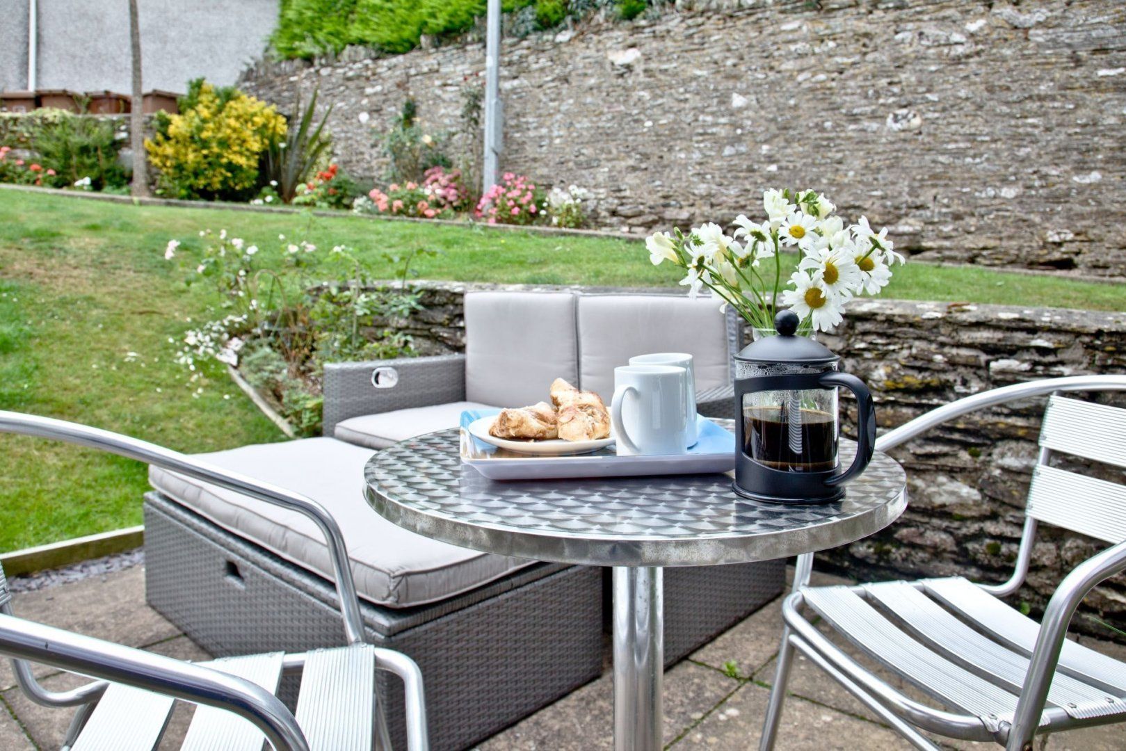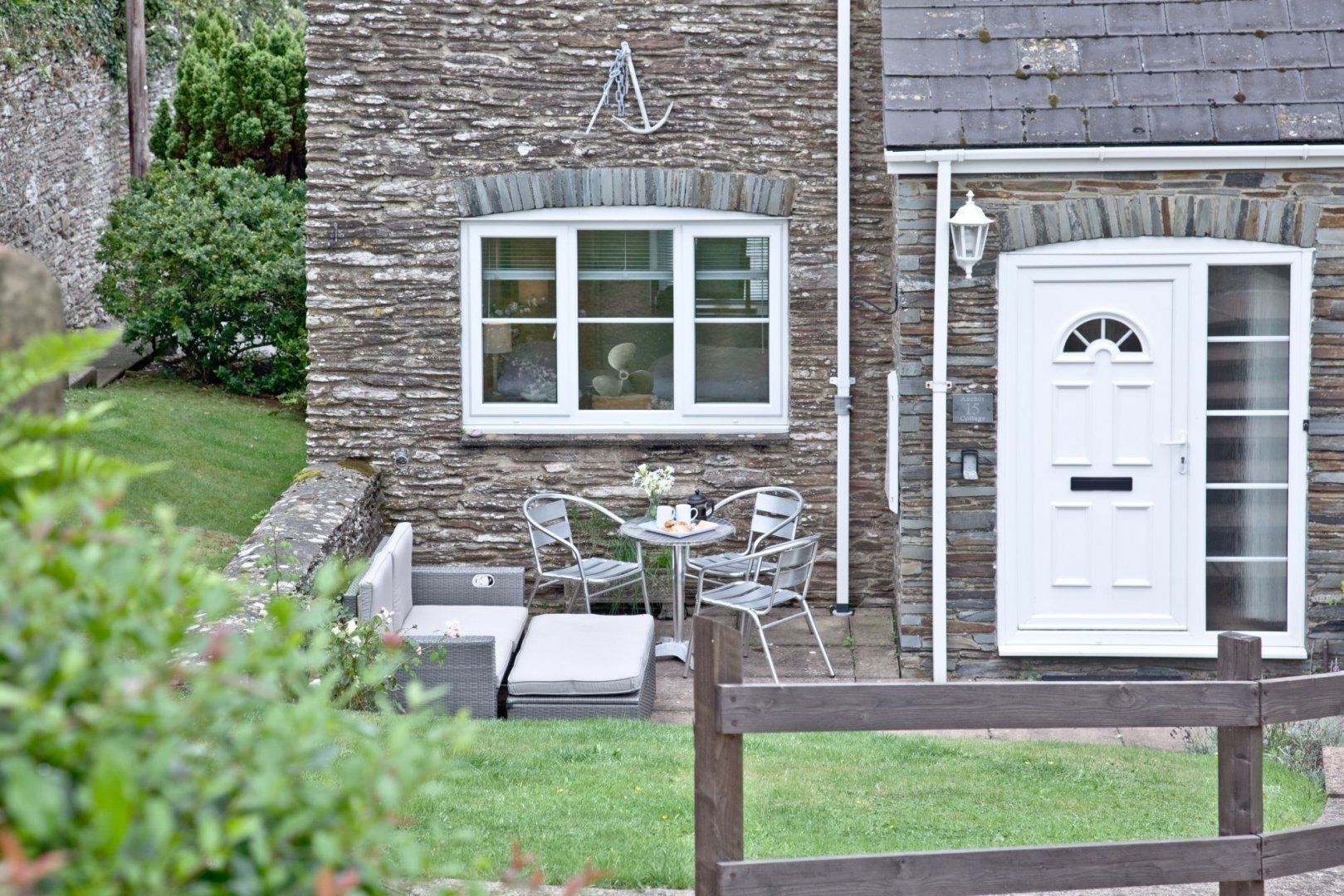 Nestled in a sleepy village on the South West coast path, this corner of Devon is the perfect place to embrace the slow pace of village life. Crafted in grey stone, this bolthole is equal parts rustic romantic as it is contemporary comfort. The upside-down layout means you'll wake up to views of the small garden in the morning. After a relaxing lie-in, head upstairs for a cup of tea and a delicious breakfast. We love the vaulted ceilings – complete with timber beams – and the squishy L-shaped sofa is just the ticket after a long day. Outside, a small patio is a sweet spot to sip morning coffees and evening cocktails. When you're ready for adventure, don your walking shoes and enjoy a ramble along the coast, rewarding yourself once finished with some hearty fare at the pub down the street. You're also well-connected to Devon's busiest destinations – it's only a fifteen-minute drive from Dartmouth and five minutes from Blackpool Sands – making this an excellent base to call home.