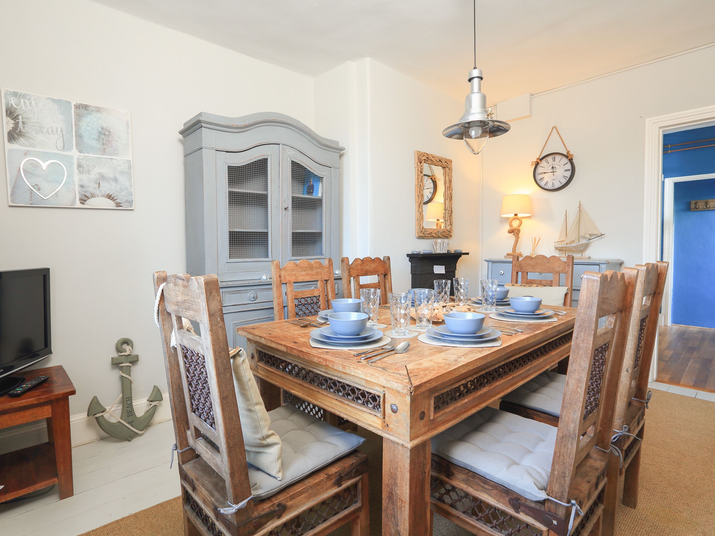 Accomodation Details Sandquay View is accessed via three flights of stairs, and has glorious views. Three bedrooms: 1 x king-size with TV, 1 x double, 1 x ground-floor twin. New refurbished (2023) ground-floor bathroom with shower cubicle, basin and WC. Kitchen. Dining room. First-floor sitting room