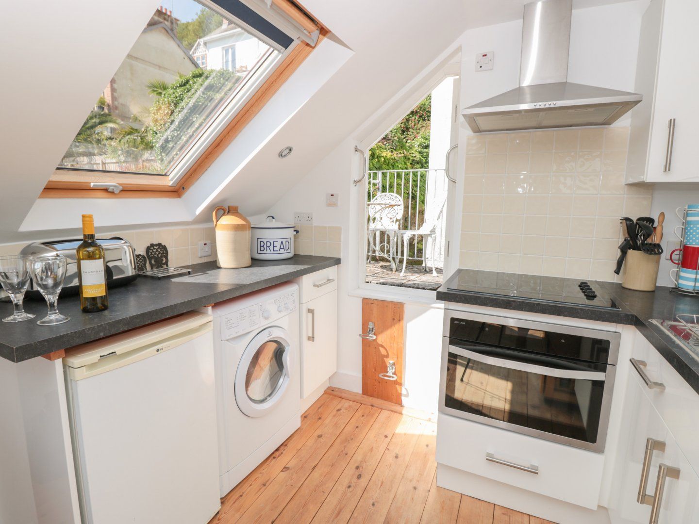 Holiday home Spyglass is a charming and unusual property, located in Dartmouth, Devon. the reverse-level accommodation has two bedrooms, a double and a twin, serviced by a shower room, sleeping four guests. The property also has a large, open-plan living area with kitchen, dining room, sitting room and woodburning stove. Outside is a rooftop terrace with furniture and a barbecue, as well as fantastic views. Spyglass is a wonderful retreat close to the River Dart and the South Devon coast.