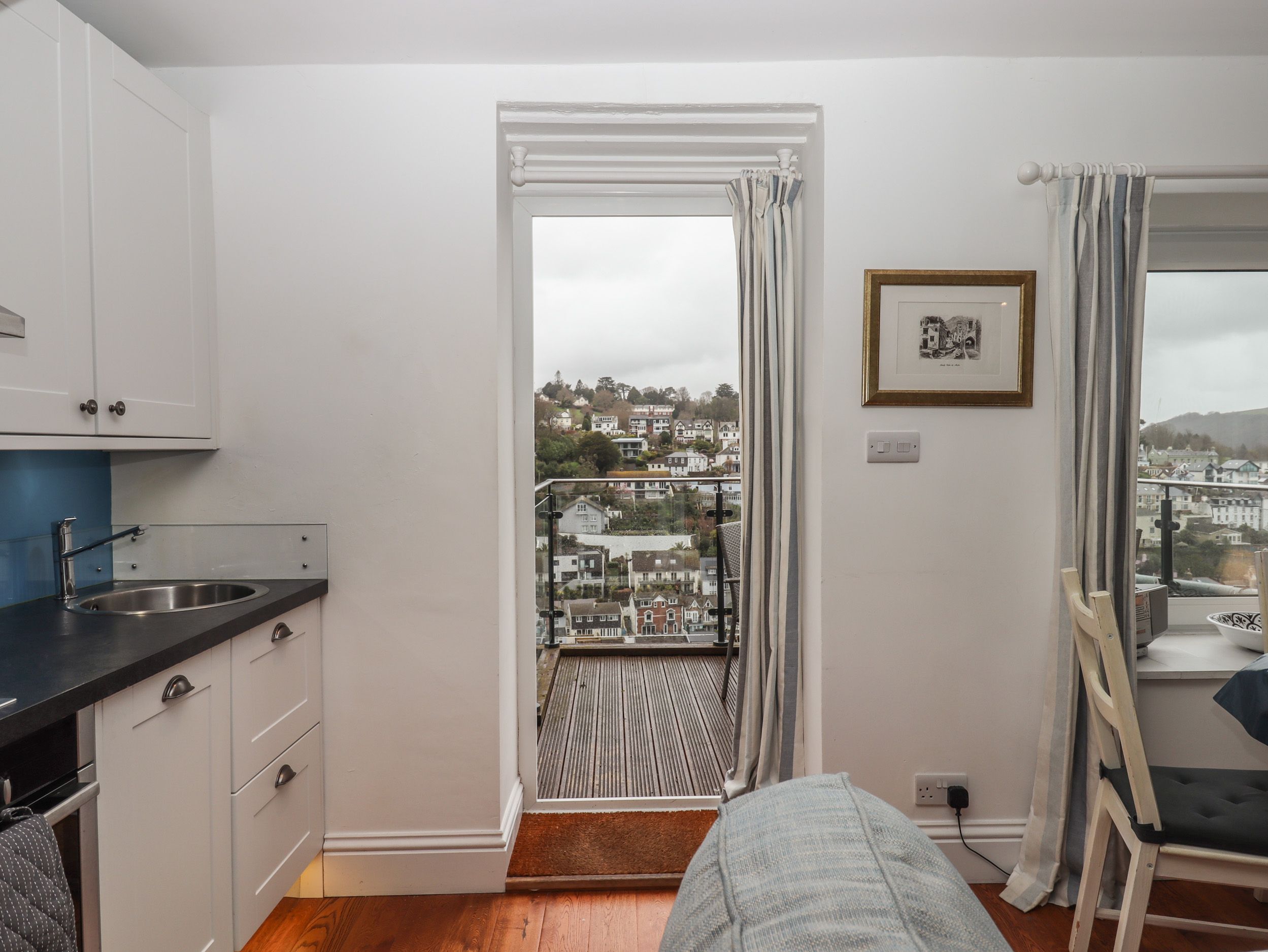 Holiday home Topsail of an open-plan living area with a kitchen, dining area and sitting area with an electric oven, induction hob, microwave, fridge, dishwasher, kettle, toaster, coffee maker, Smart TV, DVD player and dining seating for four people. The bedrooms include one second-floor double and one first-floor single along with a bathroom. Outside there is a enclosed rear garden and a private balcony as well as a designated parking place for one car. Sorry, no pets and no smoking at this property. Within 0.3 miles you will find a shop and within 0.1 miles you will find a pub. WiFi, fuel, power, starter pack for woodburning stove bed linen and towels are all included in the price. Topsail is delightful spot for your escape to Devon. Note: Property is set up a very steep hill. Note: Children must be supervised at all times due to decked balcony and terrace. Note: The check in time for this property is from 4pm and the check out time is by 11am.