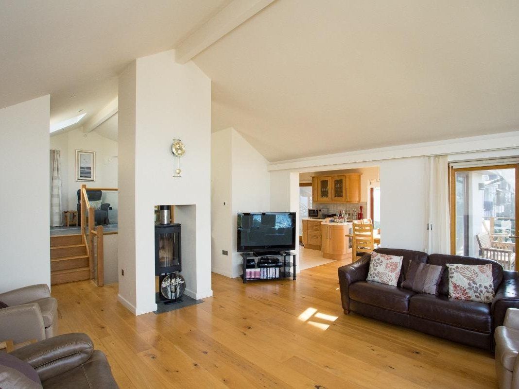 Amenities Electric central /underfloor heating. Electric oven and hob, microwave, fridge/freezer, Nespresso machine, espresso machine, washer/dryer, dishwasher, TV with YouView, Blu-ray, DAB radio/iPod dock, Playstation, WiFi. Fuel and power inc. in rent. Bed linen and towels inc. in rent. Cot and high chair available. Off road parking for 2 cars. Patios with furniture and BBQ. Sorry, no pets and no smoking. Shop/pub/river 5 mins walk. Note: Steep and narrow access to property (Max 5''8). Note: Additional parking may also be found in the chargeable Marina Car park. Note: Accessed via 52 steps, may not be suitable for those with mobility difficulties. Note: Woodburning stove in photographs not in use. Note: Max 7 adults 1 child.