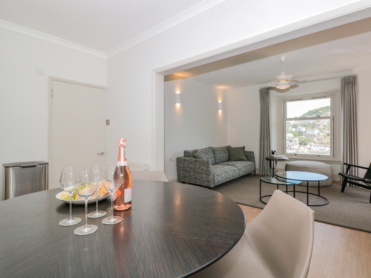 Holiday home The living areas in this first-floor apartment consist of an open-plan kitchen, dining area and sitting area with an electric double oven, hob, microwave, fridge/freezer, washing machine, dishwasher, Smart TV, and Juliet balcony, and a study with a sofa and a computer monitor. The bedrooms consist of a super-king-size and a twin (zip/link), along with a bathroom and a shower room. Outside there is a permit parking for one car, located within the town centre. This is a pet-free and smoke-free property. You'll find a shop in 0.3 miles, a pub in 0.2 mikes, River Dart in 0.1 mile, and the beach in 0.7 miles. WiFi, fuel, power, bed linen and towels are all included in the price. Upper Tremorvah is well-positioned to explore the Devonshire coastline. Note: The property is accessed by one flight of stairs with handrail.