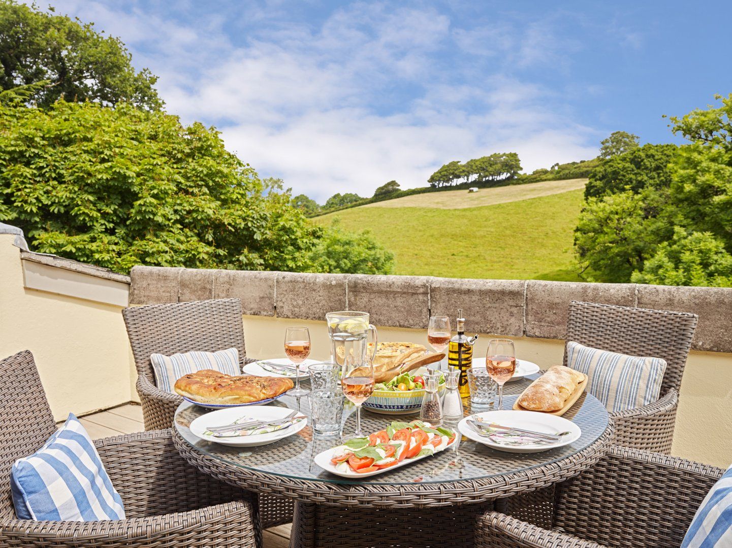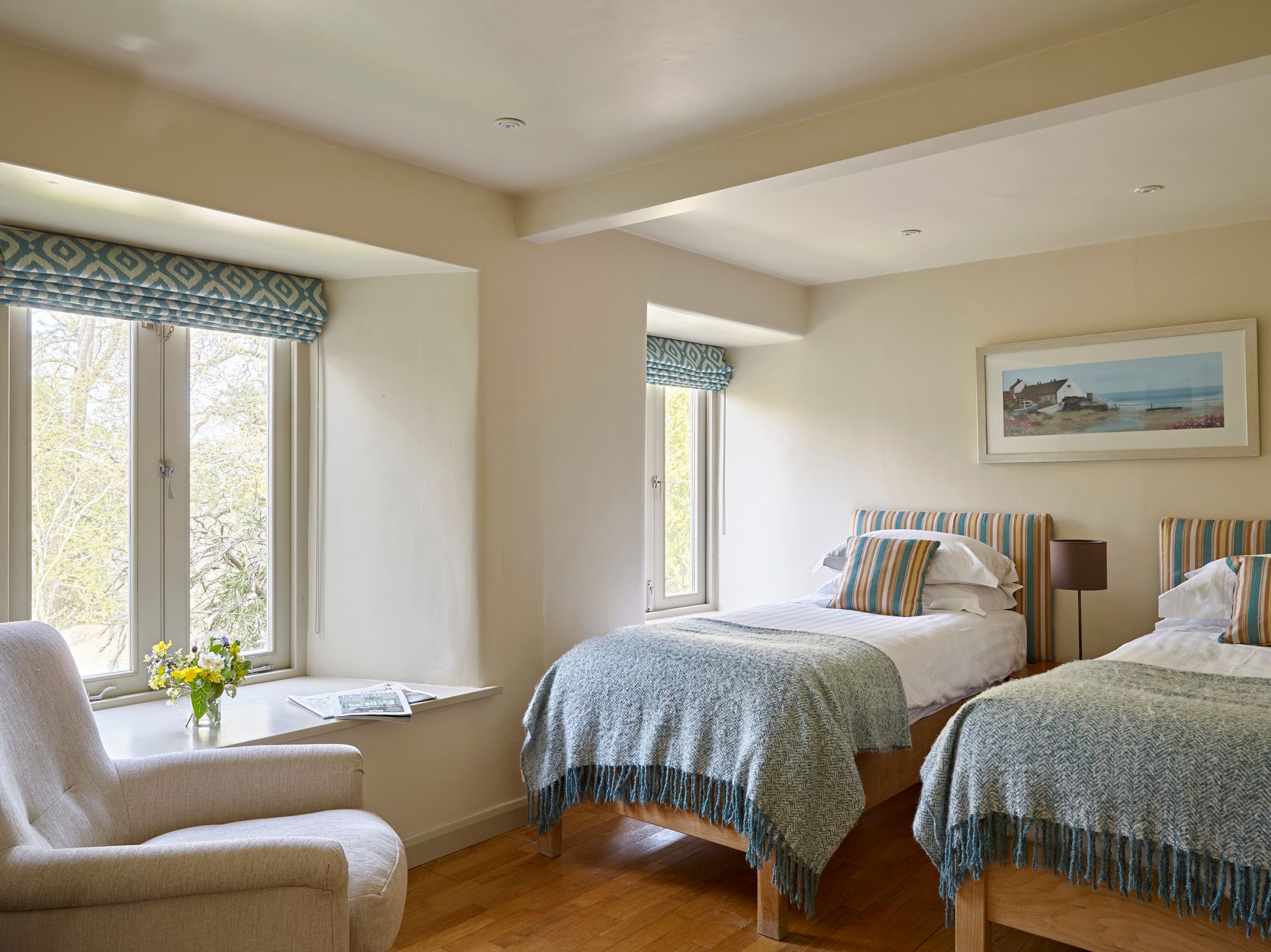 Reverse-level accommodation. Two bedrooms: 1 x ground-floor double with en-suite shower, basin and WC, 1 x ground-floor twin. Bathroom with bath, shower over, basin and WC. First-floor open-plan living area with kitchen, dining and sitting areas. Lovely enclosed patio with table for alfresco dining and enjoying wonderful views.