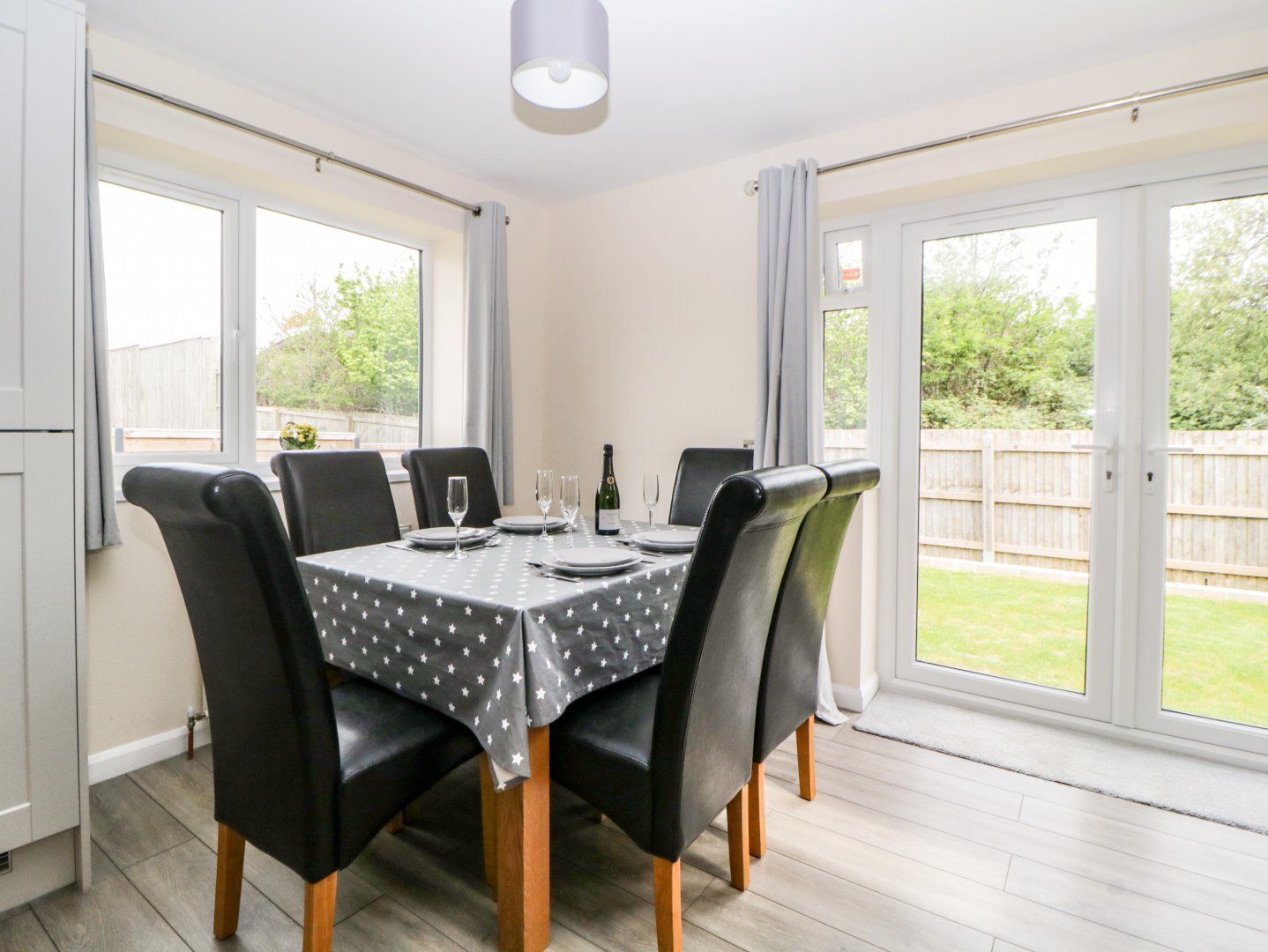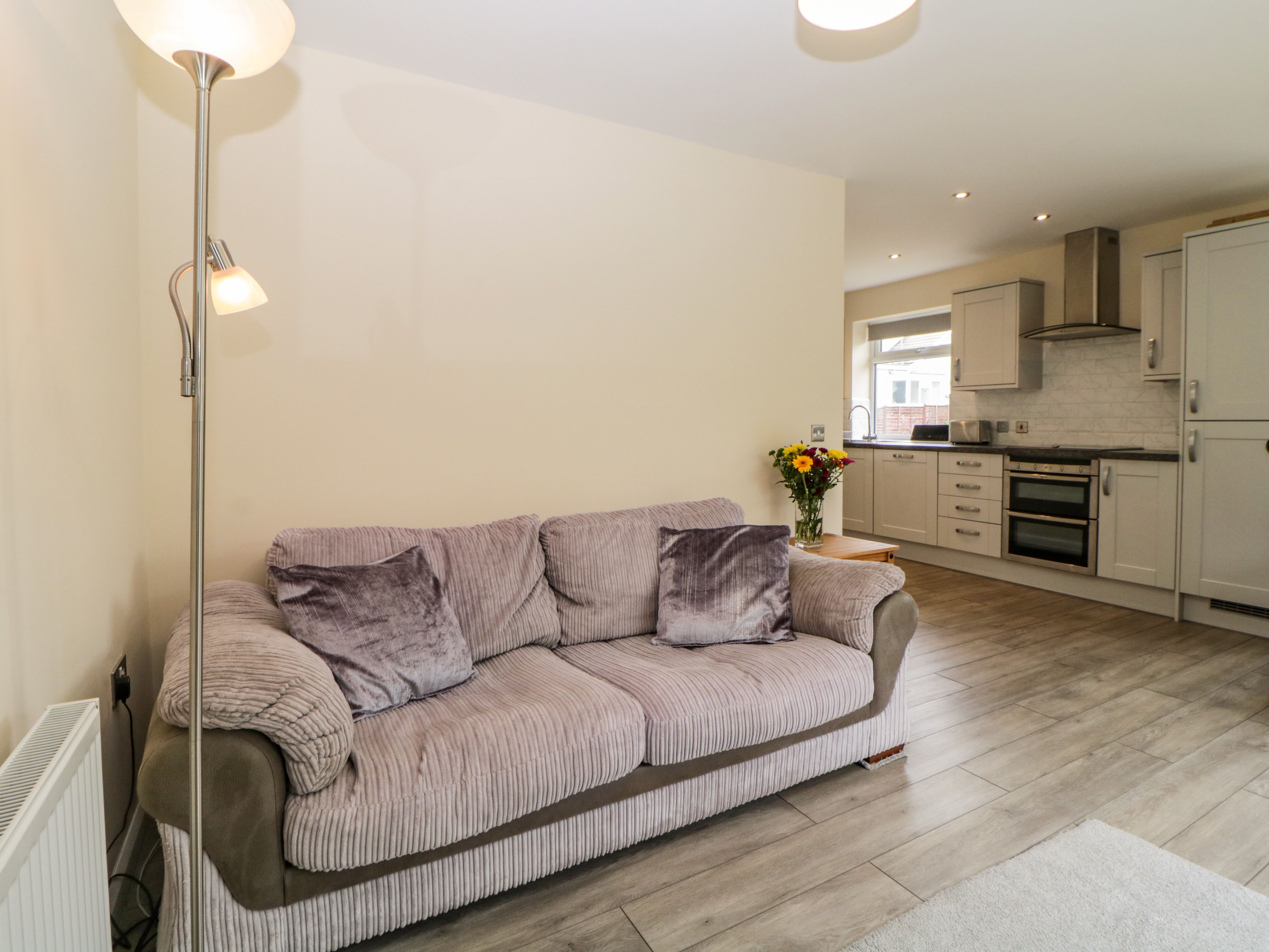 Amenities Electric central heating. Electric oven, induction hob, microwave, fridge/freezer, washing machine and dishwasher. 1 x Smart TV, 2 x TV, WiFi. Fuel and power inc. in rent. Bed linen and towels inc. in rent. Off-road parking. Enclosed rear garden with lawn and furniture. Sorry, no pets and no smoking. Shop 0.3 miles, pub 0.8 miles, beach 1.3 miles. Note: There are steps down from the patio doors to the lawn