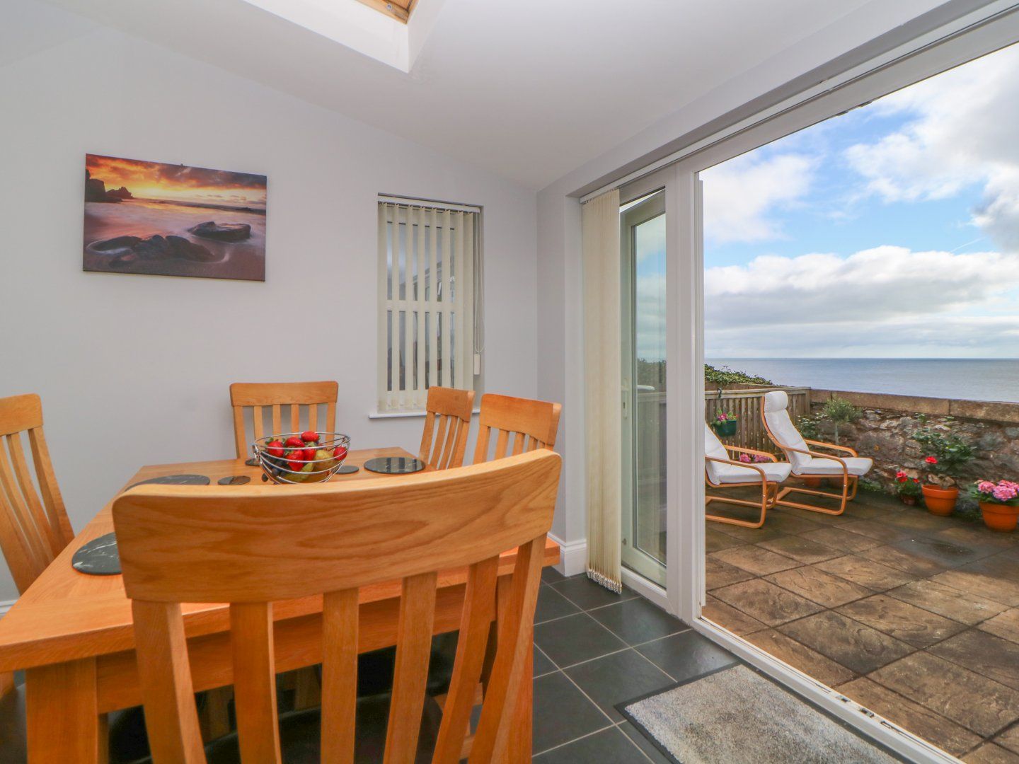 Gas central heating with electric pebble fire. Electric double oven, induction hob, microwave, fridge, freezer, washing machine, TV, and WiFi. Fuel and power inc. in rent. Bed linen and towels inc. in rent. Roadside parking. Enclosed patio terrace with furniture and sea views. Sorry, no pets and no smoking. Shop within 0.4 miles, pub within 0.3 miles. Note: There are 40 steps down to the property entrance from the street, therefore this property is not suitable for those with limited mobility. Note: In the 4-foot double bedroom (no TV) the bed is only accessible from one side, please consider this when booking. Please note: there is ongoing construction work building the second section of the protective sea wall along the front and the railway line during summer and autumn 2021. The times vary according to the tides so can include some late or early hours too. Please contact us or the property owner for details of the schedule during your stay. Please Note - This property accepts a minimum of 5 nights.