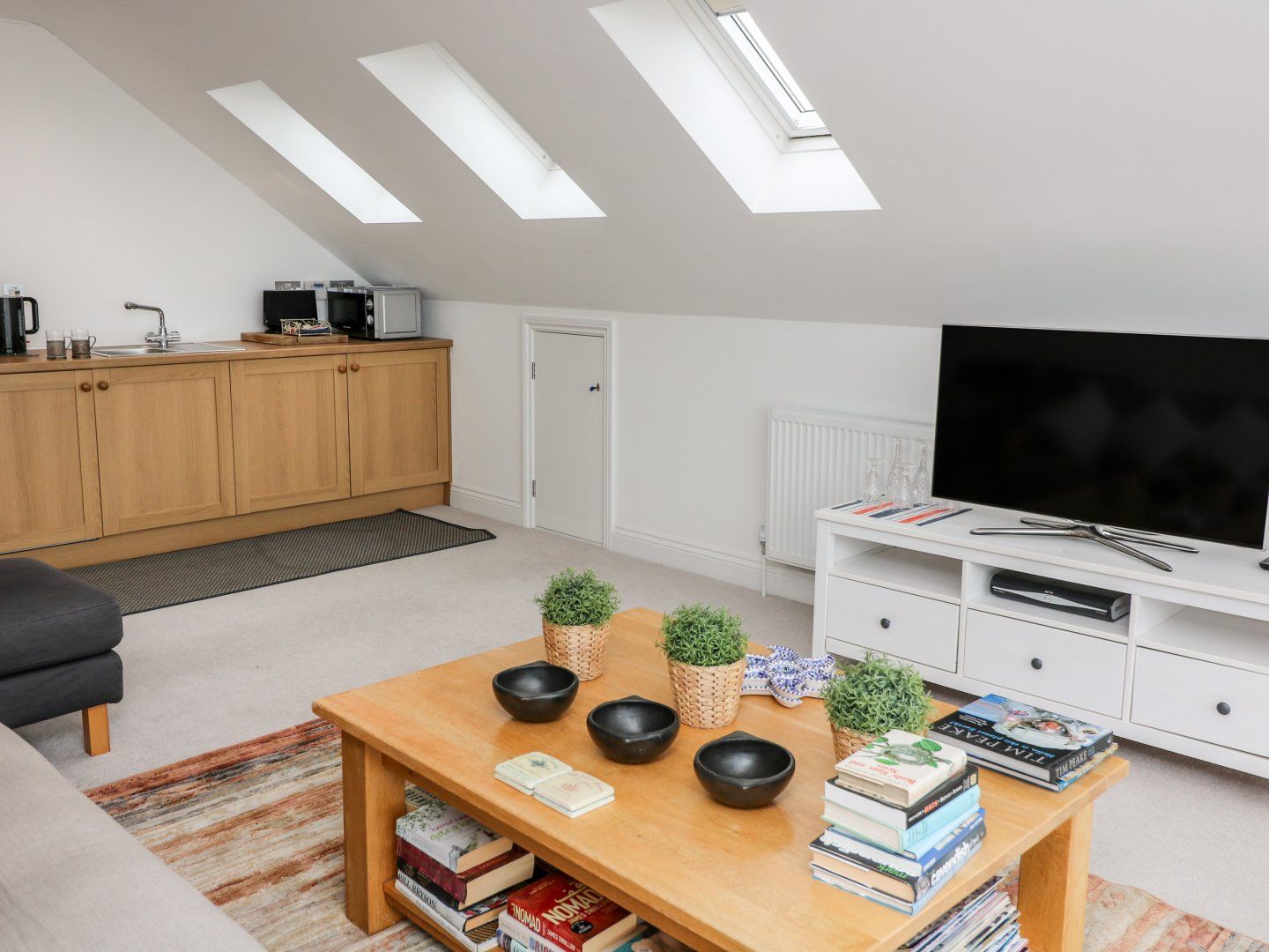 Accomodation Details First-floor apartment. One bedroom: 1 x super king-size (zip/link, can be twin on request) with en suit WC and wash basin. Shower room with walk-in shower, rainfall shower, basin and WC. Cloakroom with basin and WC. Open-plan living area with kitchenette with sitting area