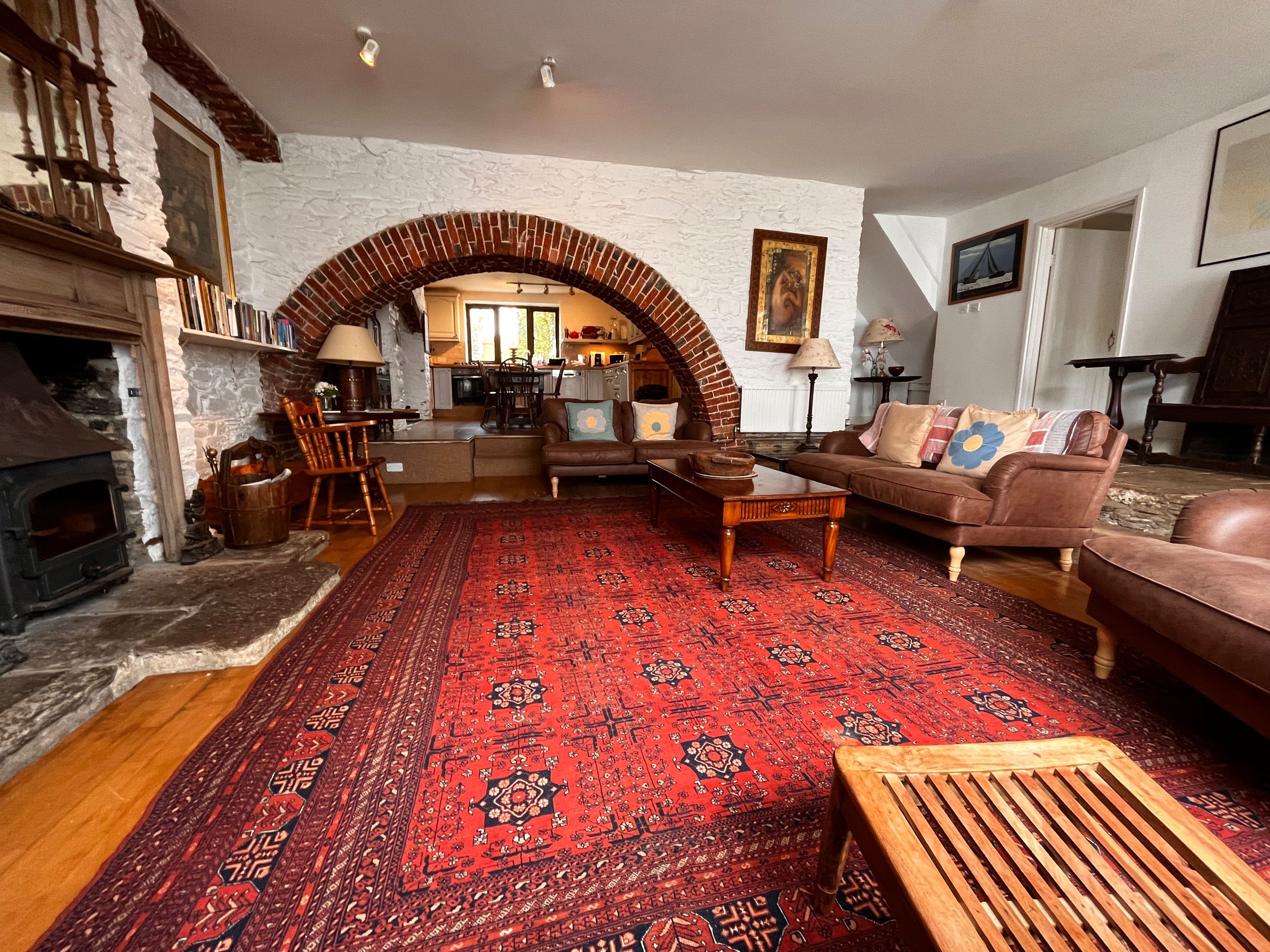 Accomodation Details Two bedrooms: 1 x double with en-suite walk-in shower, basin and WC, 1 x family room with 1 x double, 2 x 3' single. Bathroom with bath, shower over, basin and WC. Kitchen/diner with woodburning stove. Sitting room with feature fireplace.