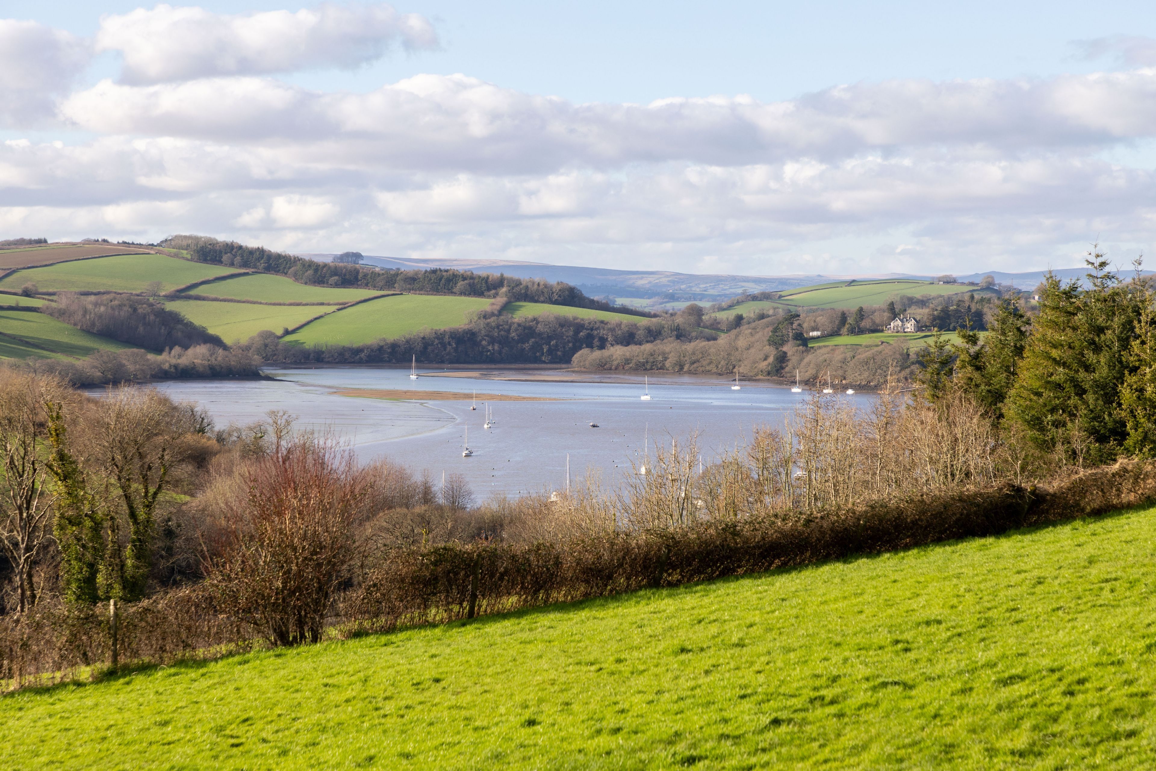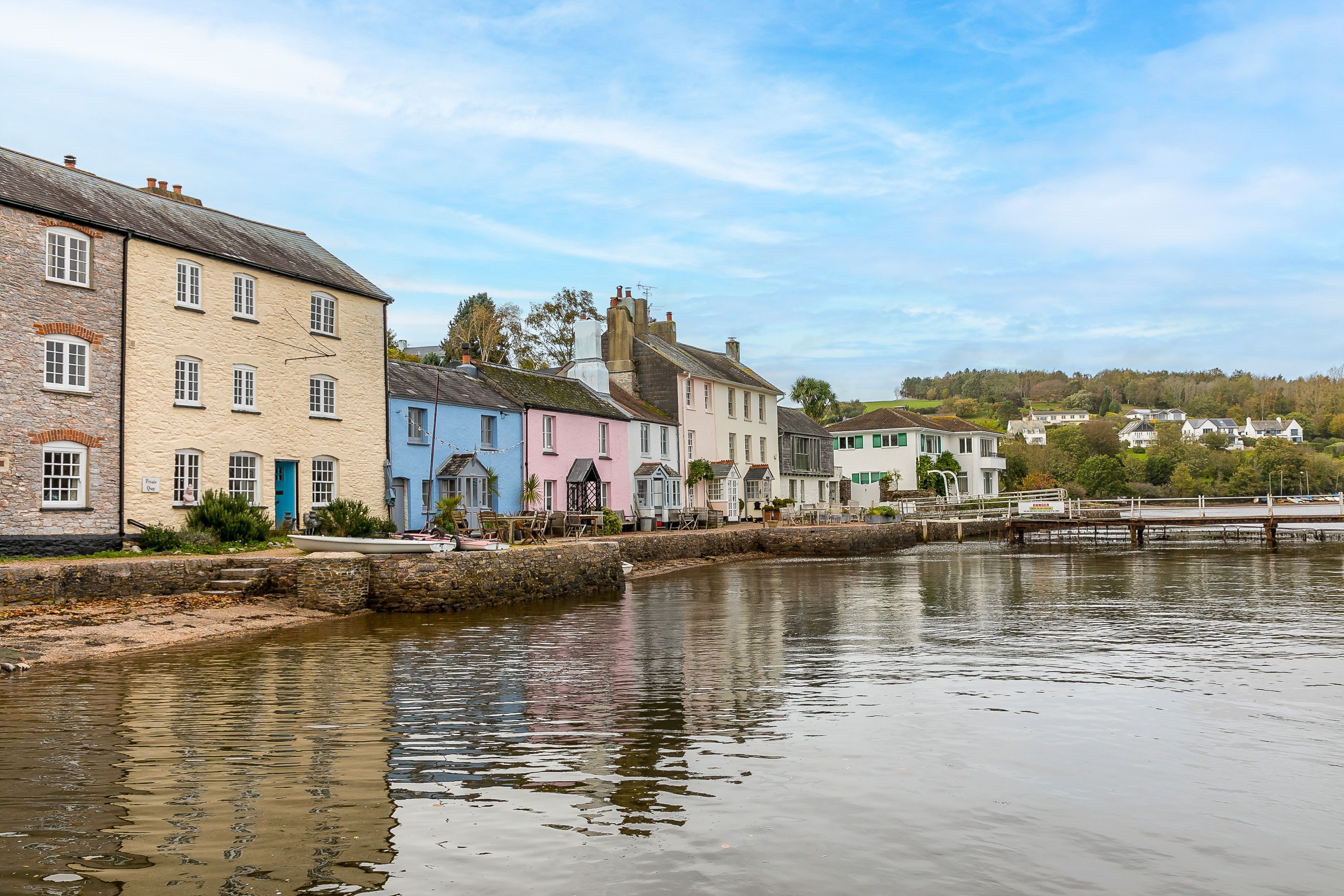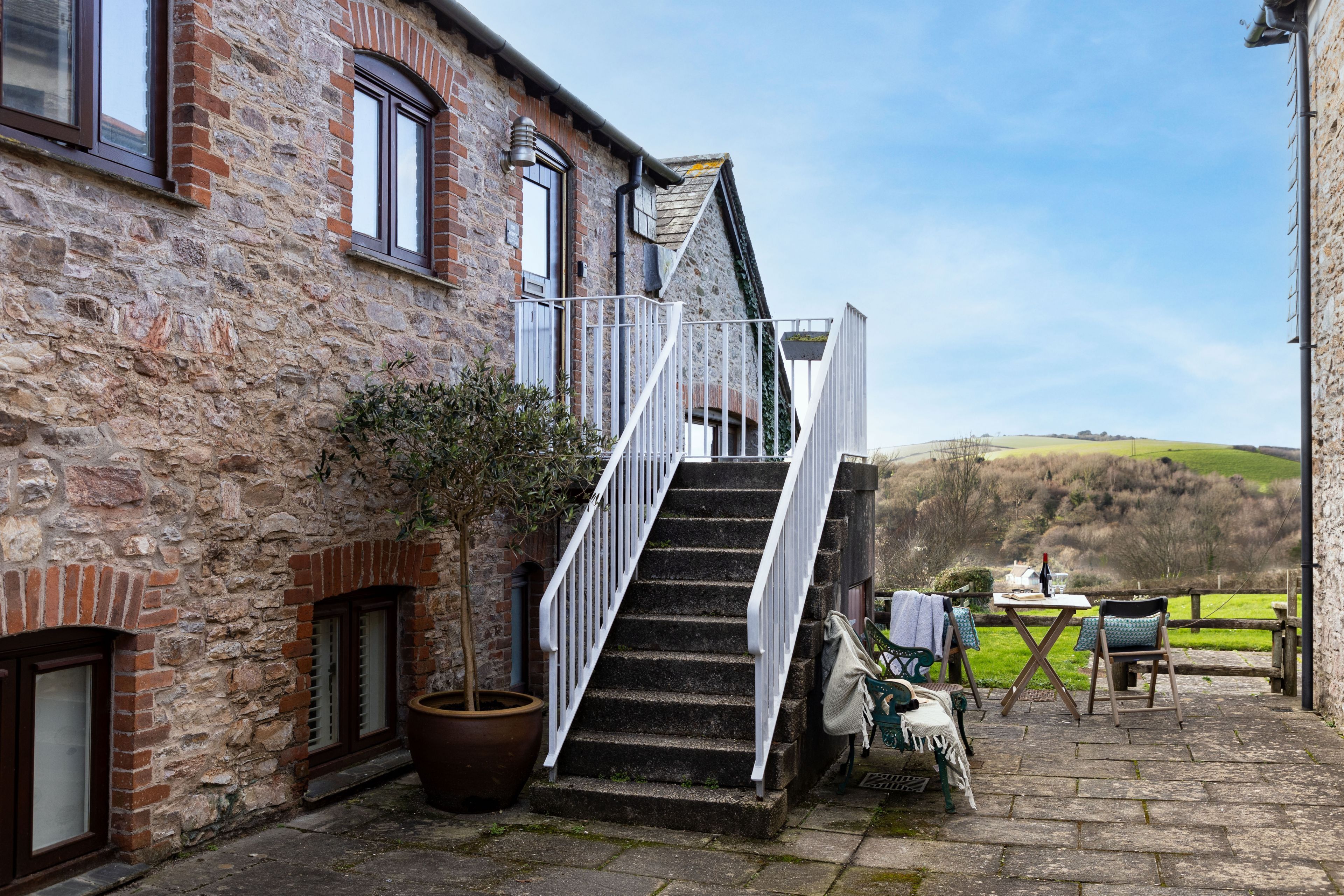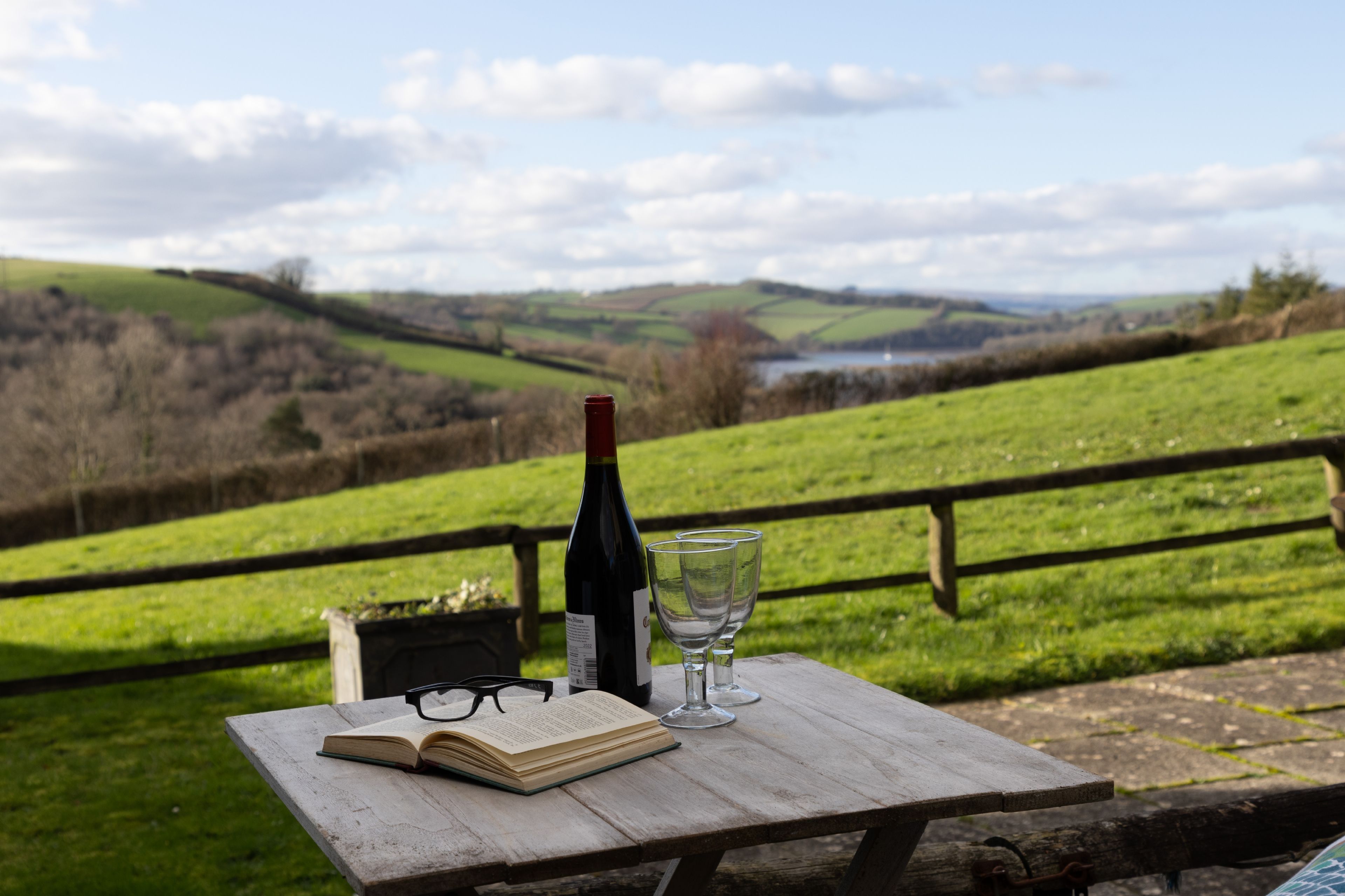 Just inland from the River Dart, this two-floor Devon home is perfect for two couples seeking an off-the-beaten-path escape. Set on four acres of communal grounds, you've got plenty of space here to enjoy dog walks or a ramble, and the idyllic quayside village of Dittisham is just a short walk away. The sunken bath is a nice touch here, as is that view. And just so you know, the home has an upside-down design, so both bedrooms are on the lower floor.